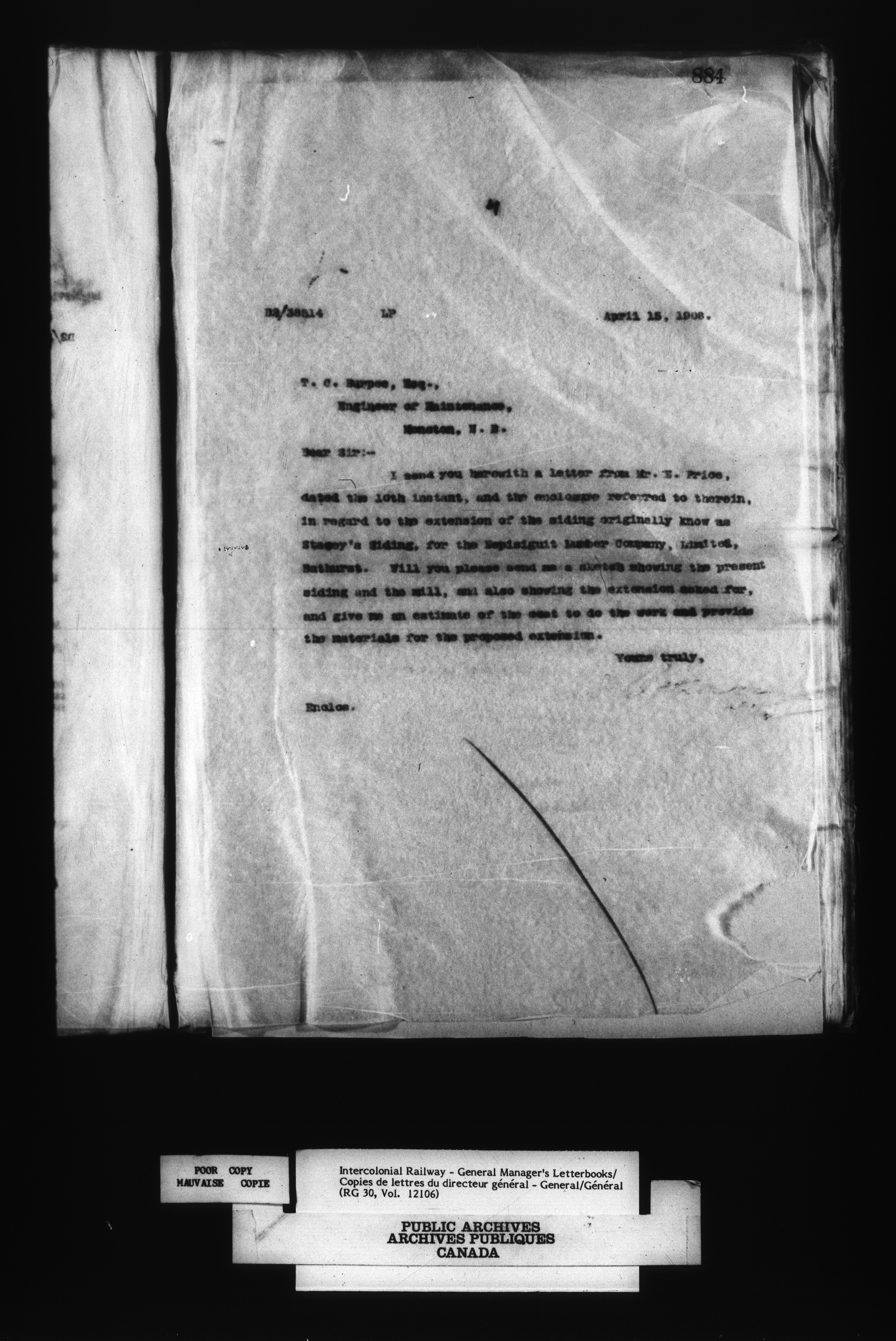 Canadian Government Railways : Office of the General Manager, Outward correspondence - 12445