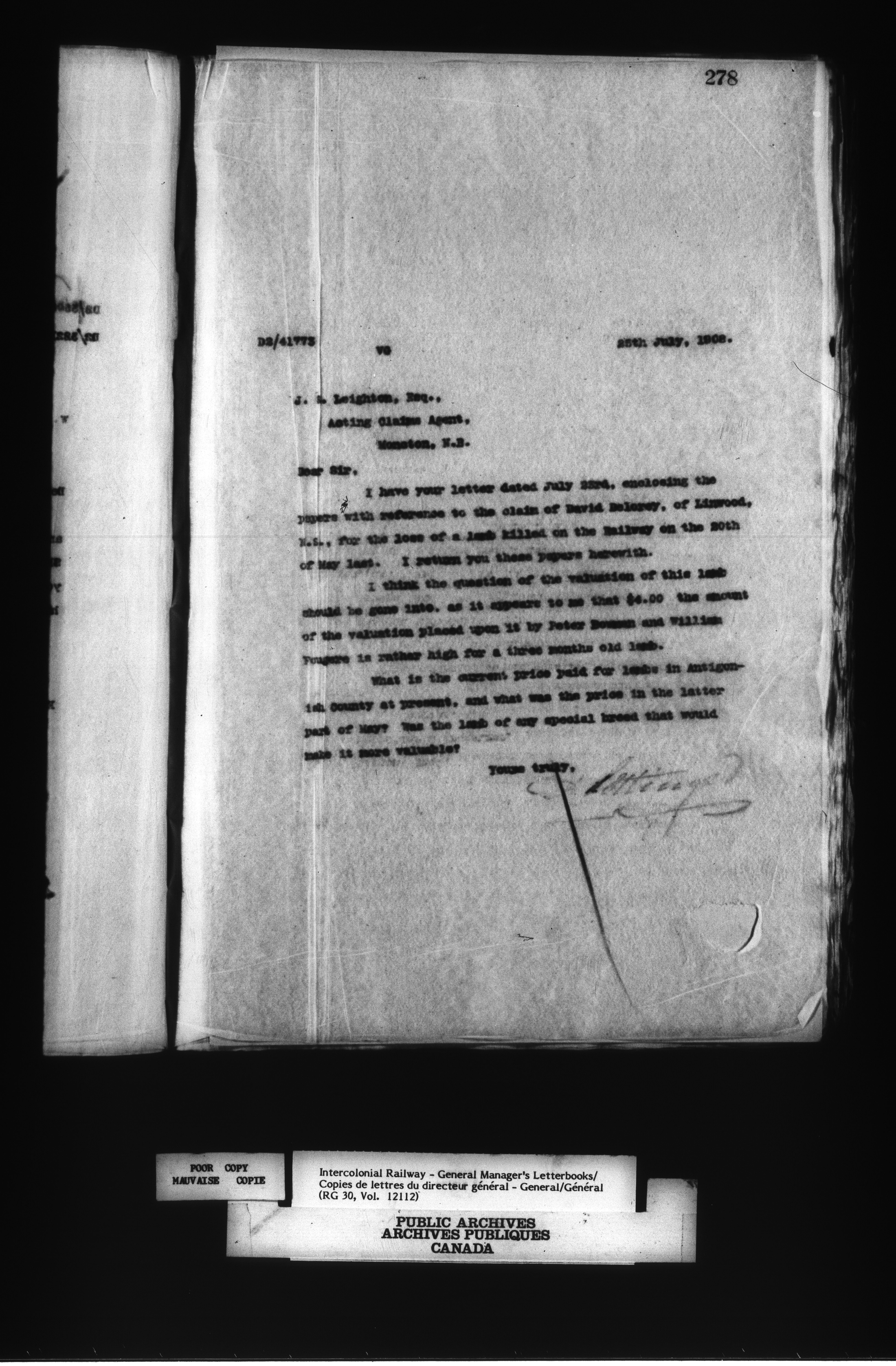 Canadian Government Railways : Office of the General Manager, Outward correspondence - 12449