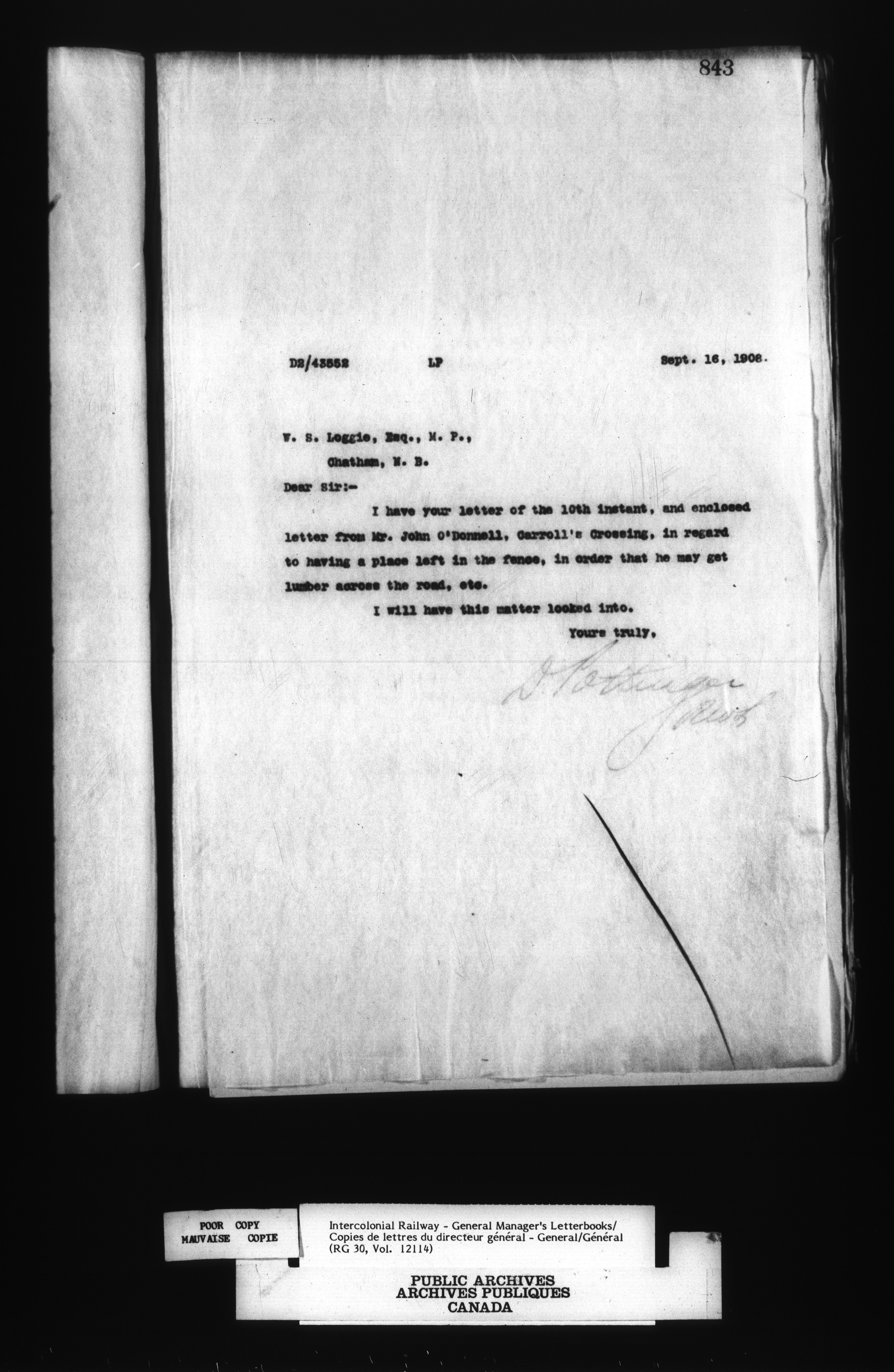 Canadian Government Railways : Office of the General Manager, Outward correspondence - 12450
