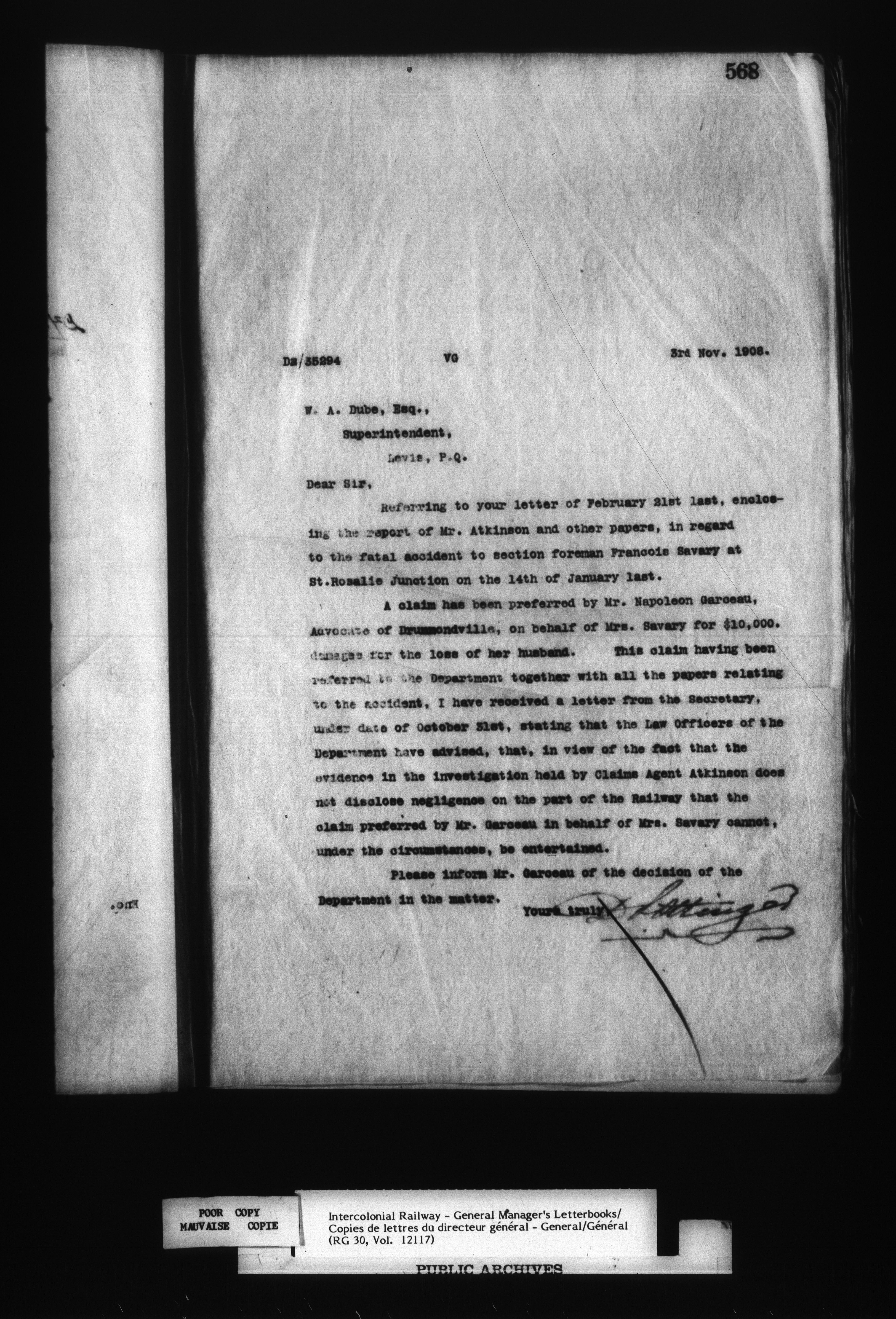 Canadian Government Railways : Office of the General Manager, Outward correspondence - 12452