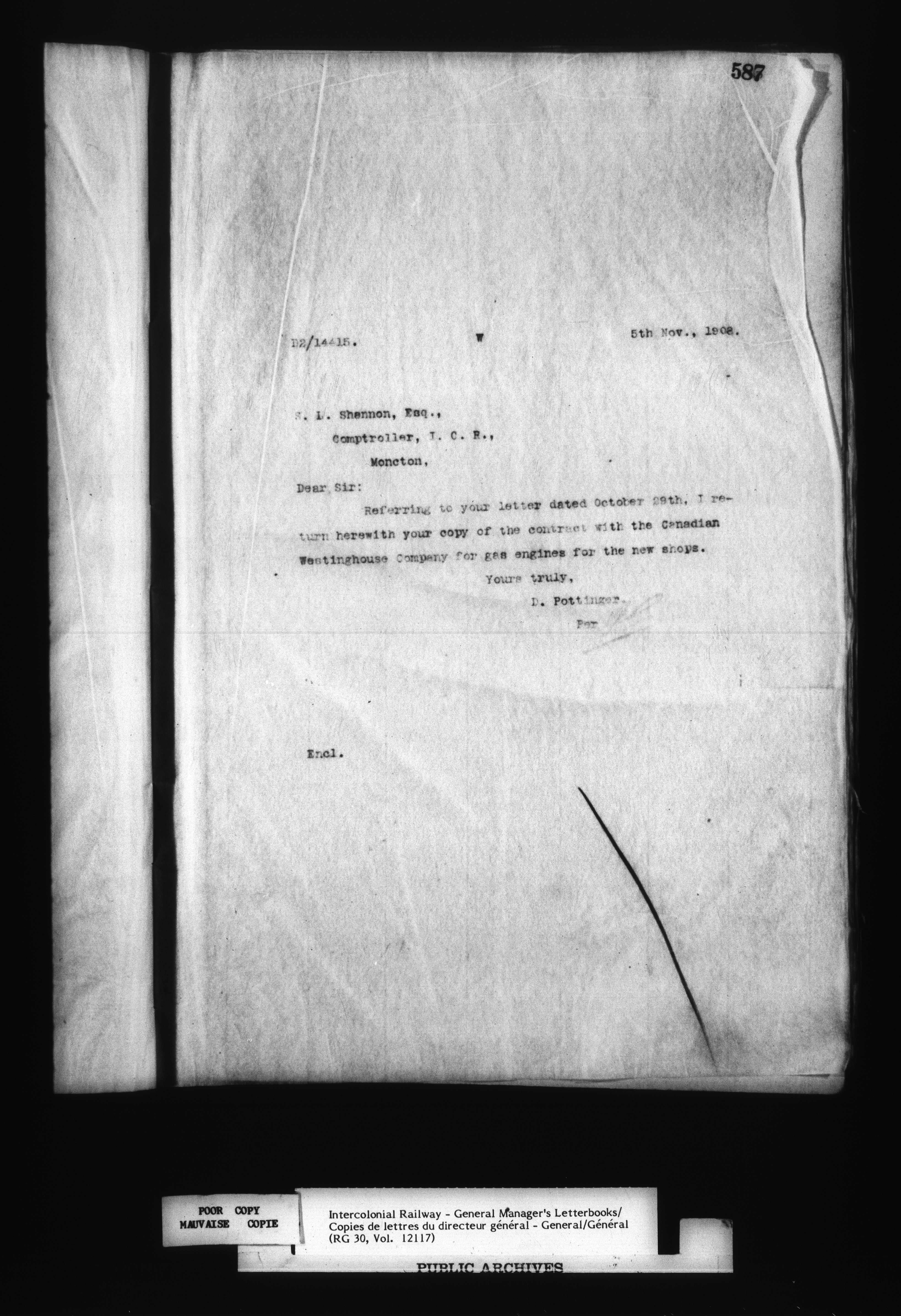 Canadian Government Railways : Office of the General Manager, Outward correspondence - 12452