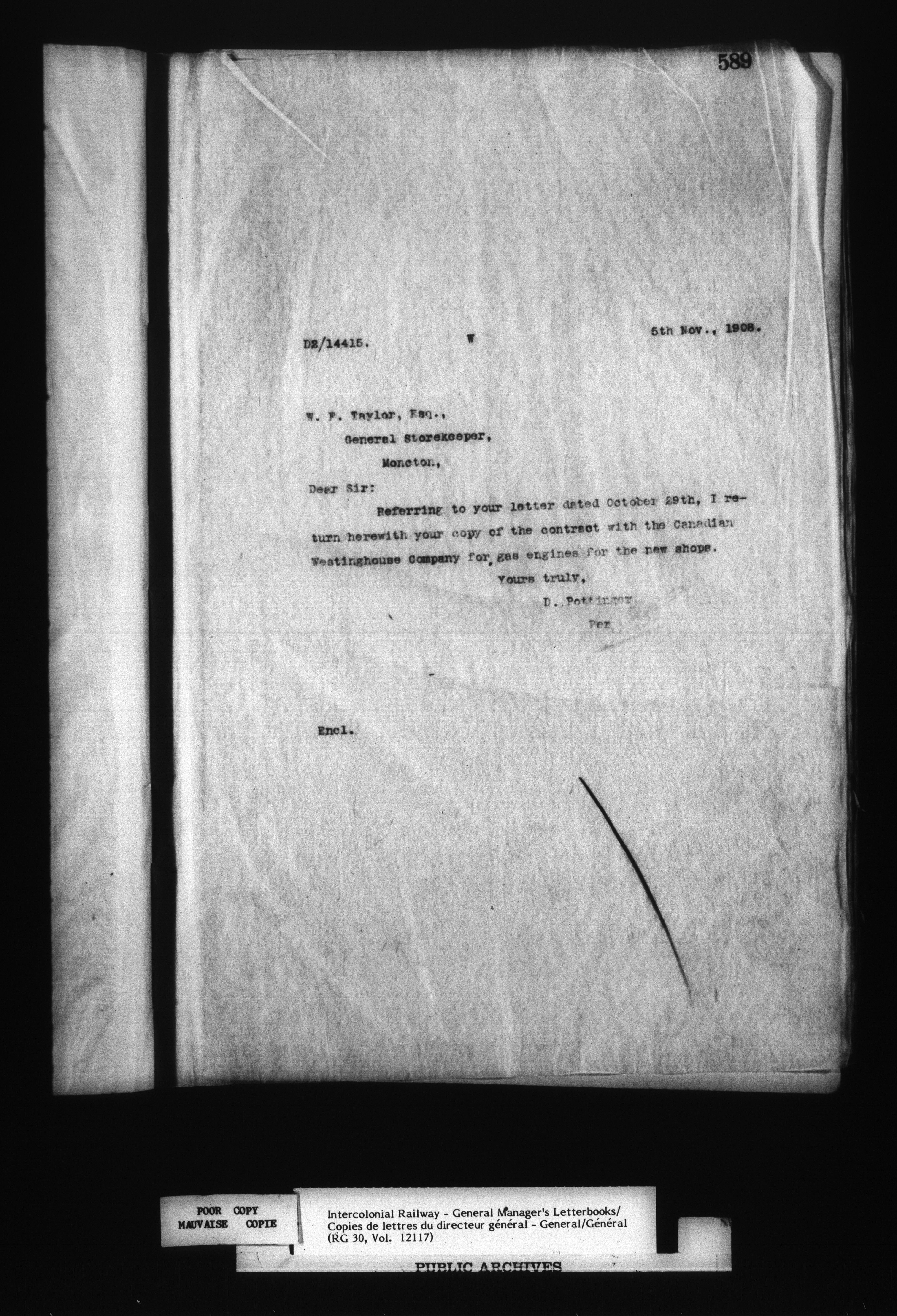 Canadian Government Railways : Office of the General Manager, Outward correspondence - 12452