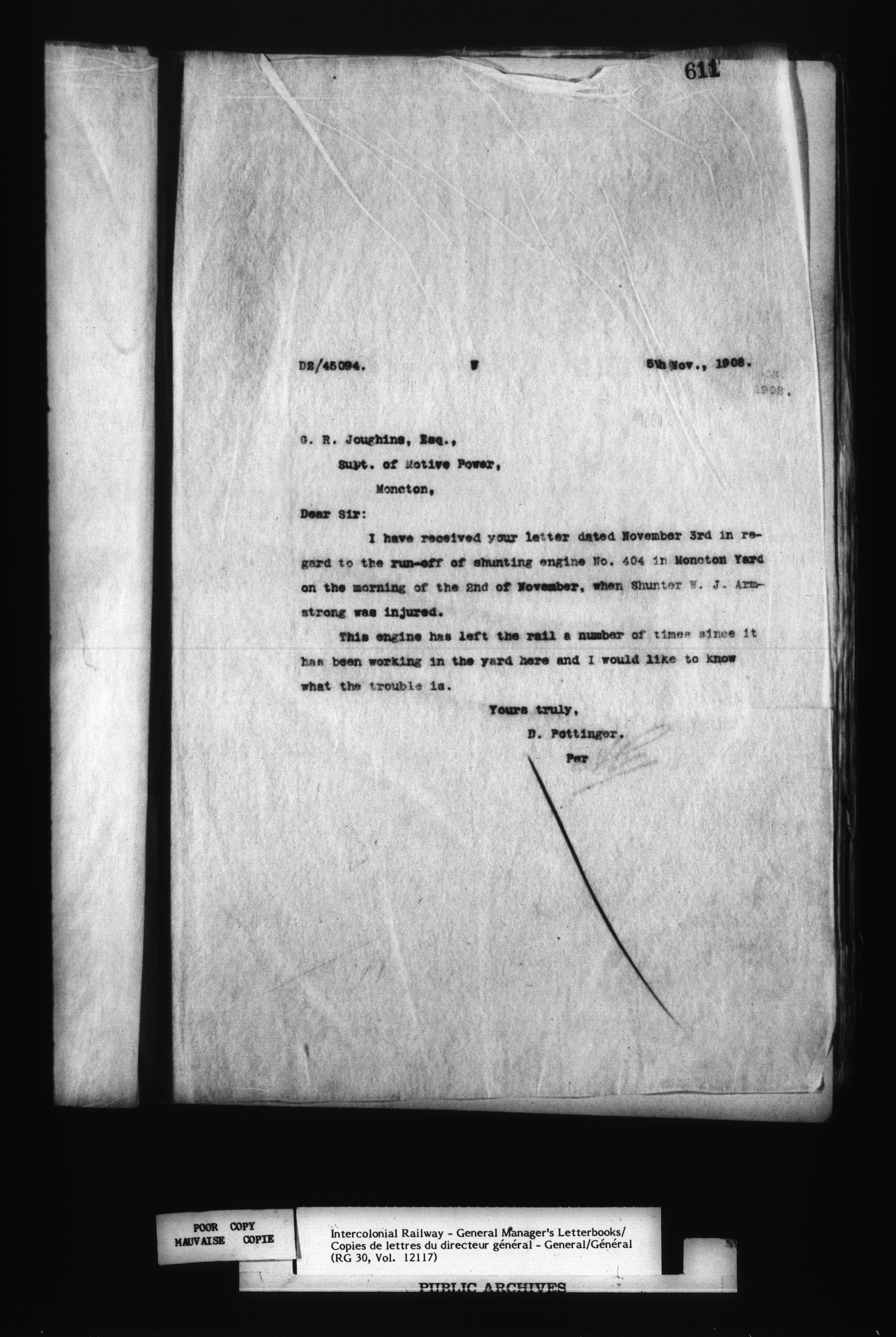 Canadian Government Railways : Office of the General Manager, Outward correspondence - 12452