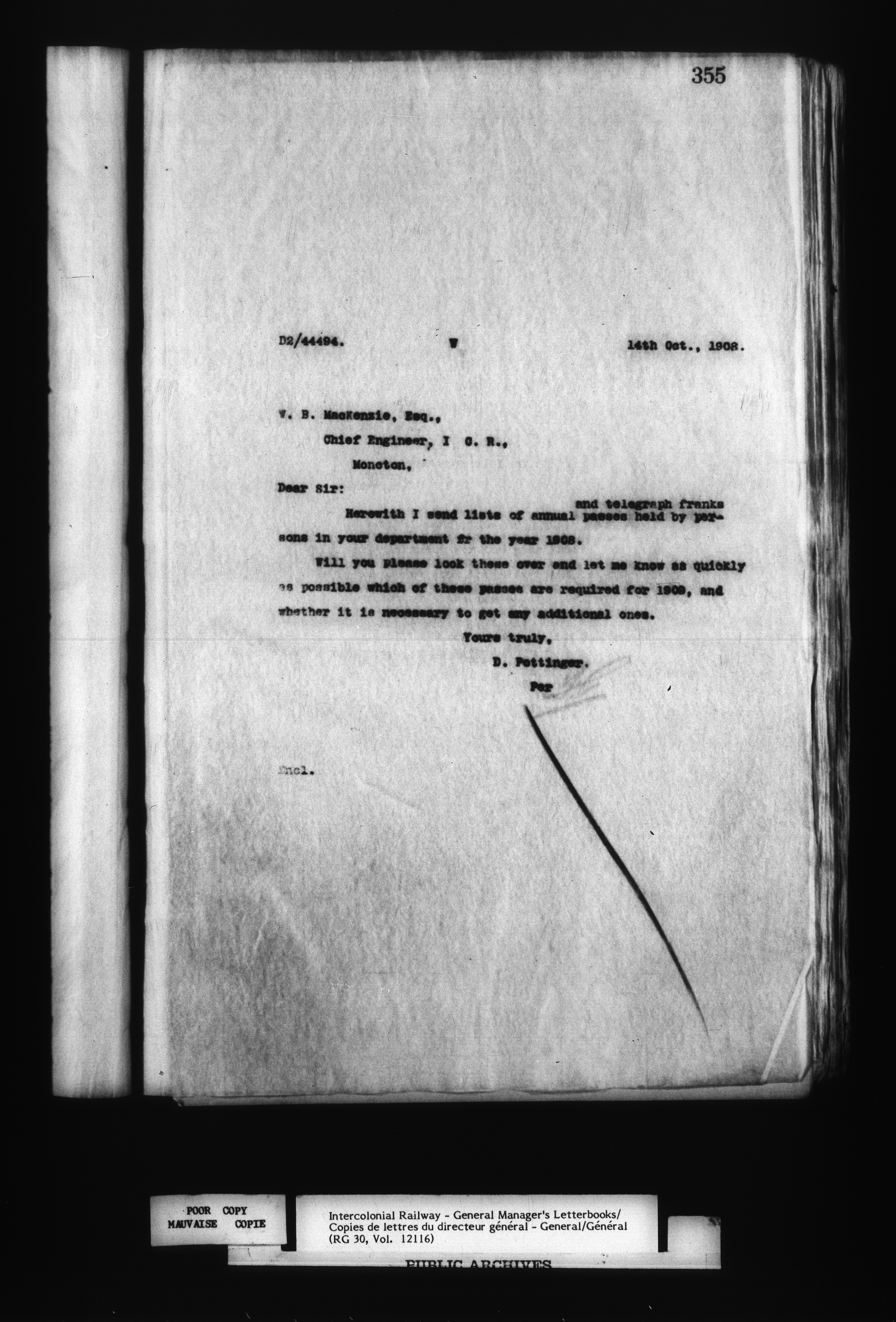 Canadian Government Railways : Office of the General Manager, Outward correspondence - 12452