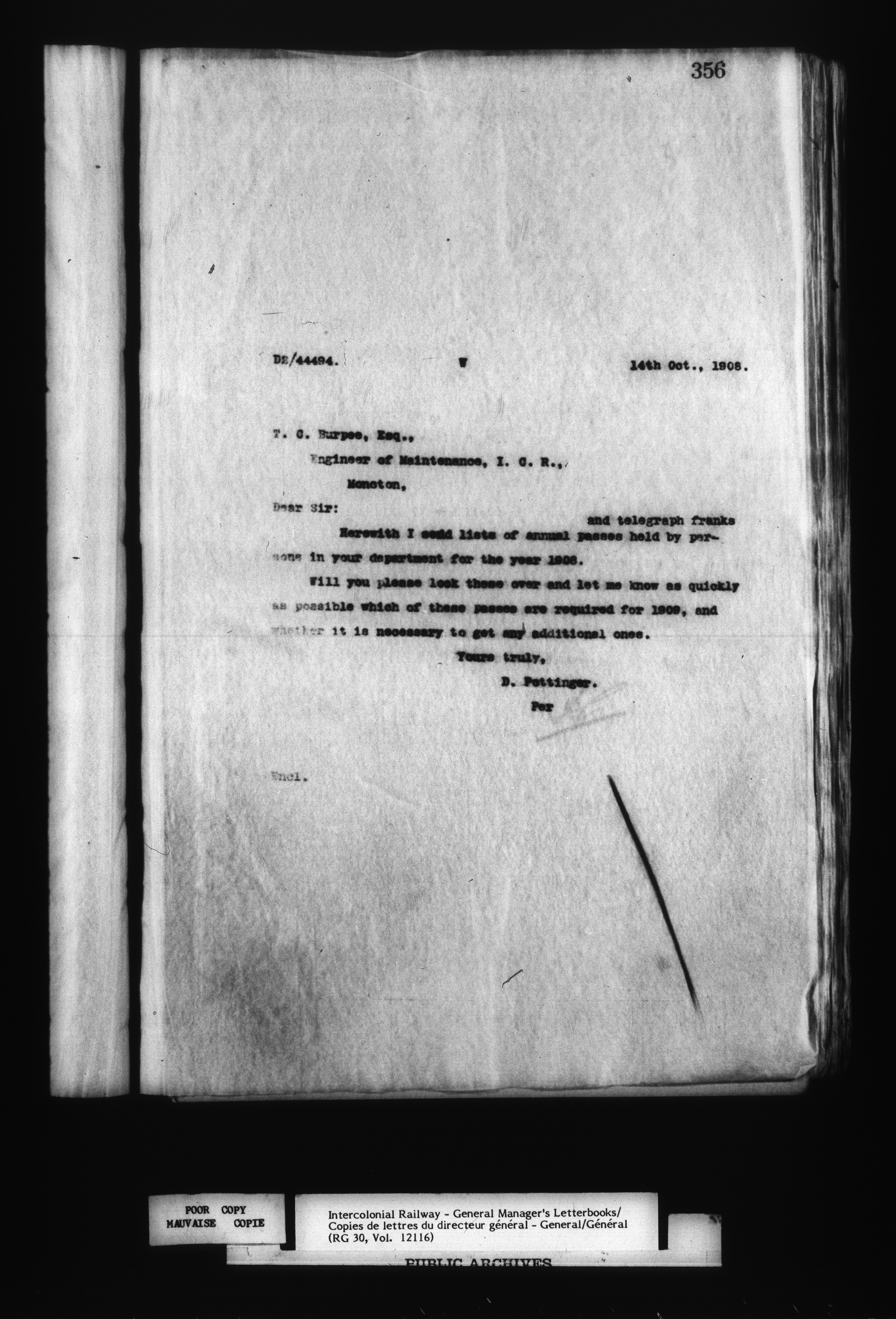 Canadian Government Railways : Office of the General Manager, Outward correspondence - 12452