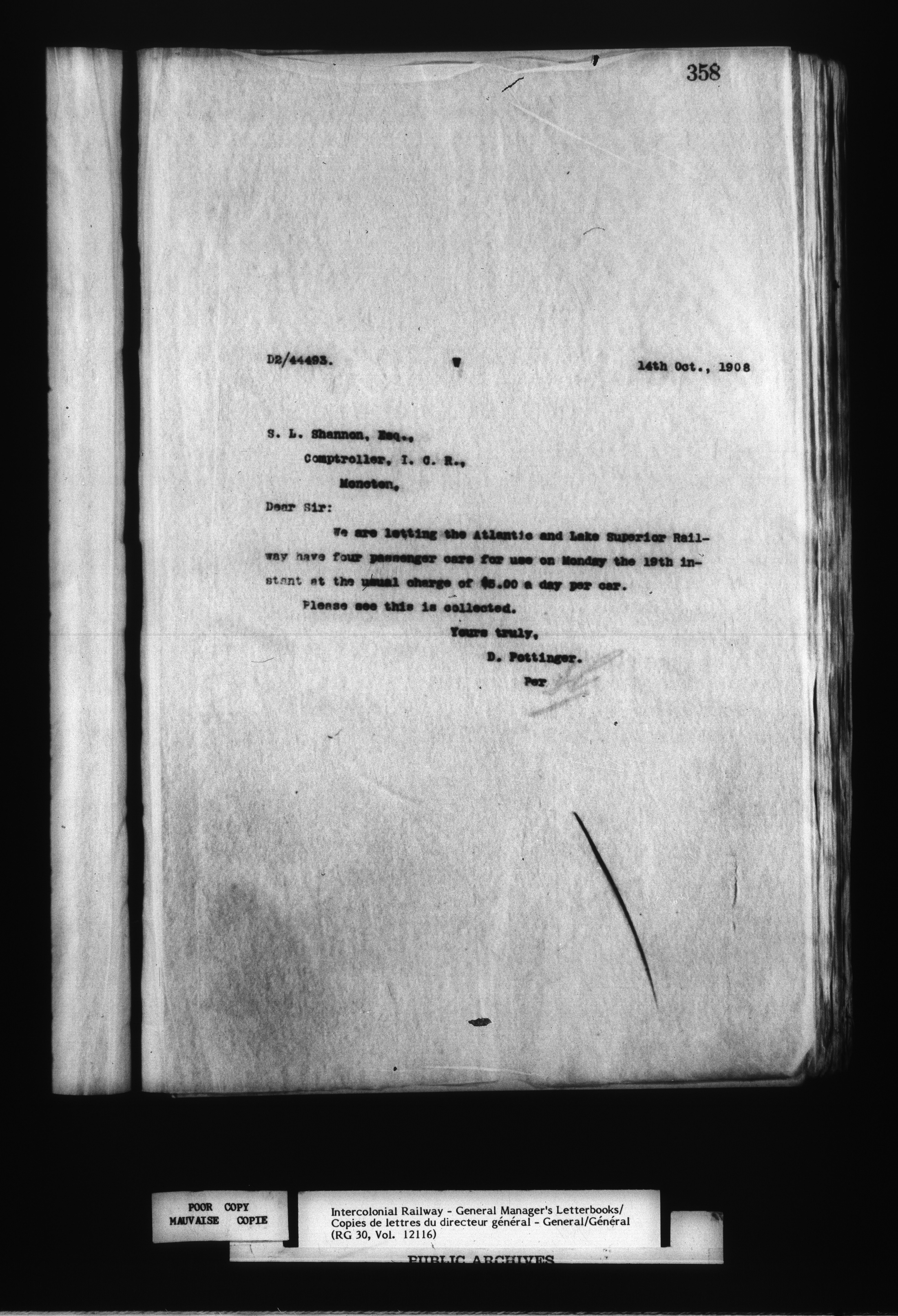 Canadian Government Railways : Office of the Chief Superintendent, Outward correspondence : C-12452