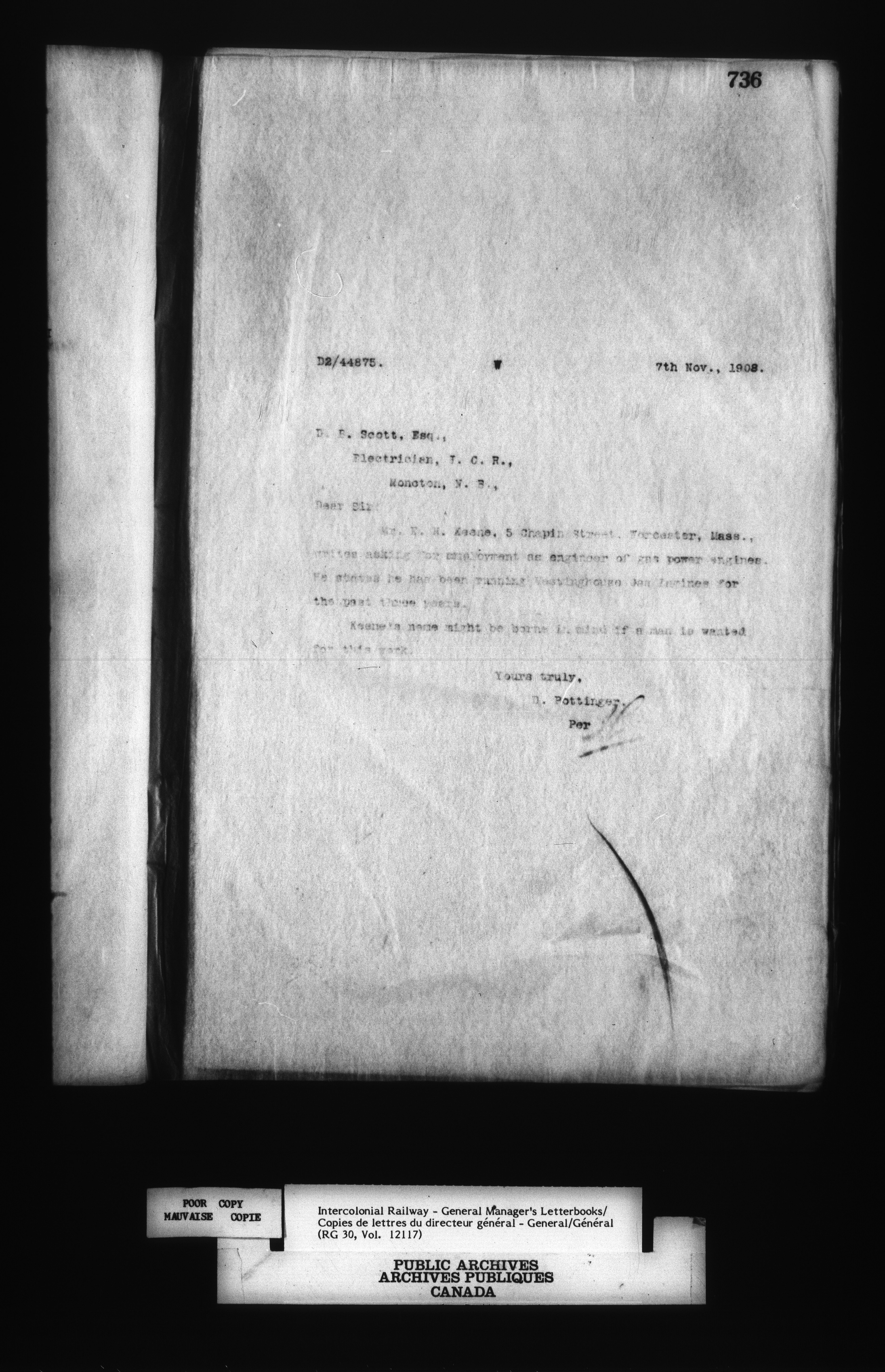 Canadian Government Railways : Office of the General Manager, Outward correspondence - 12453