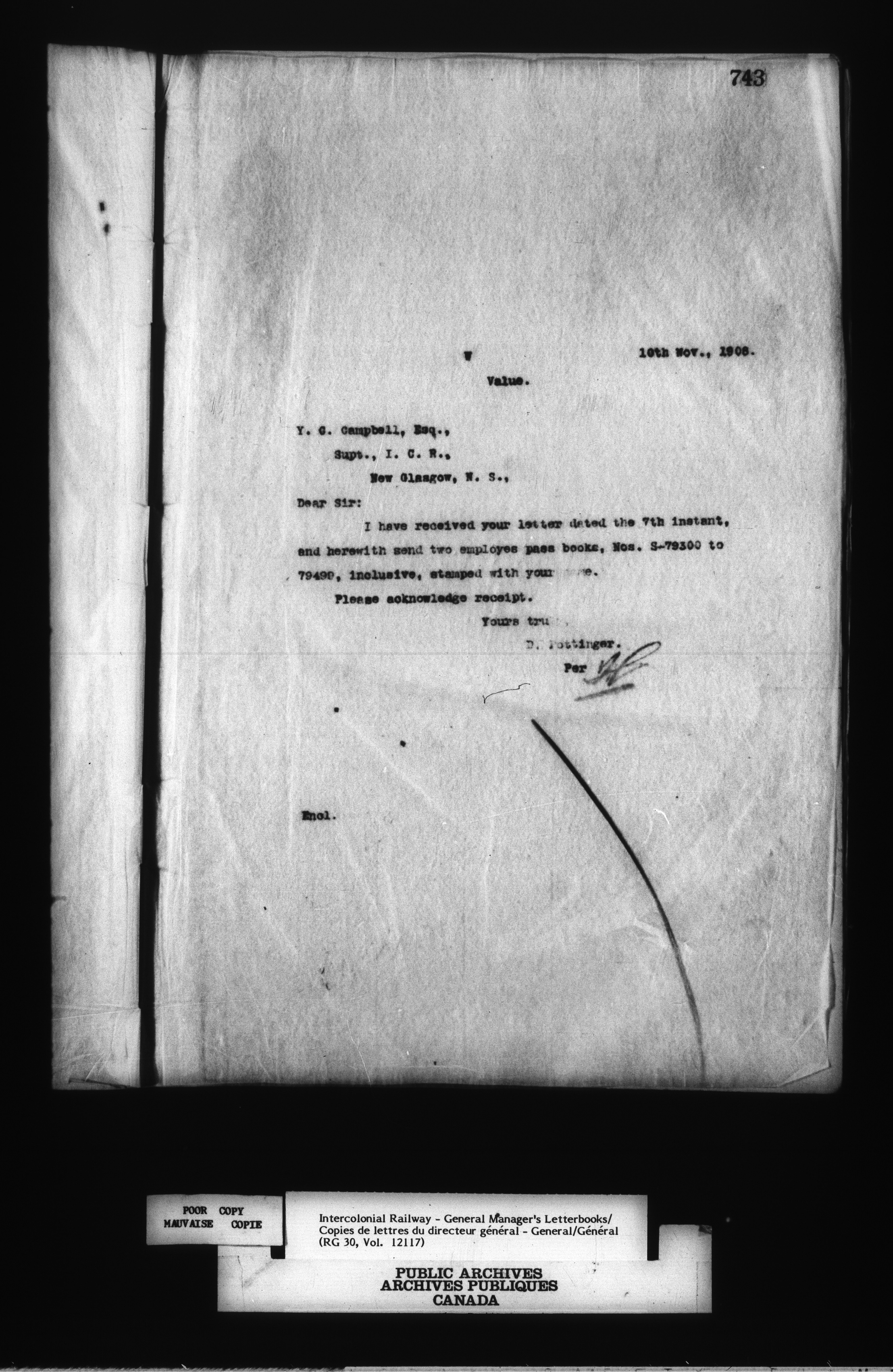 Canadian Government Railways : Office of the General Manager, Outward correspondence - 12453
