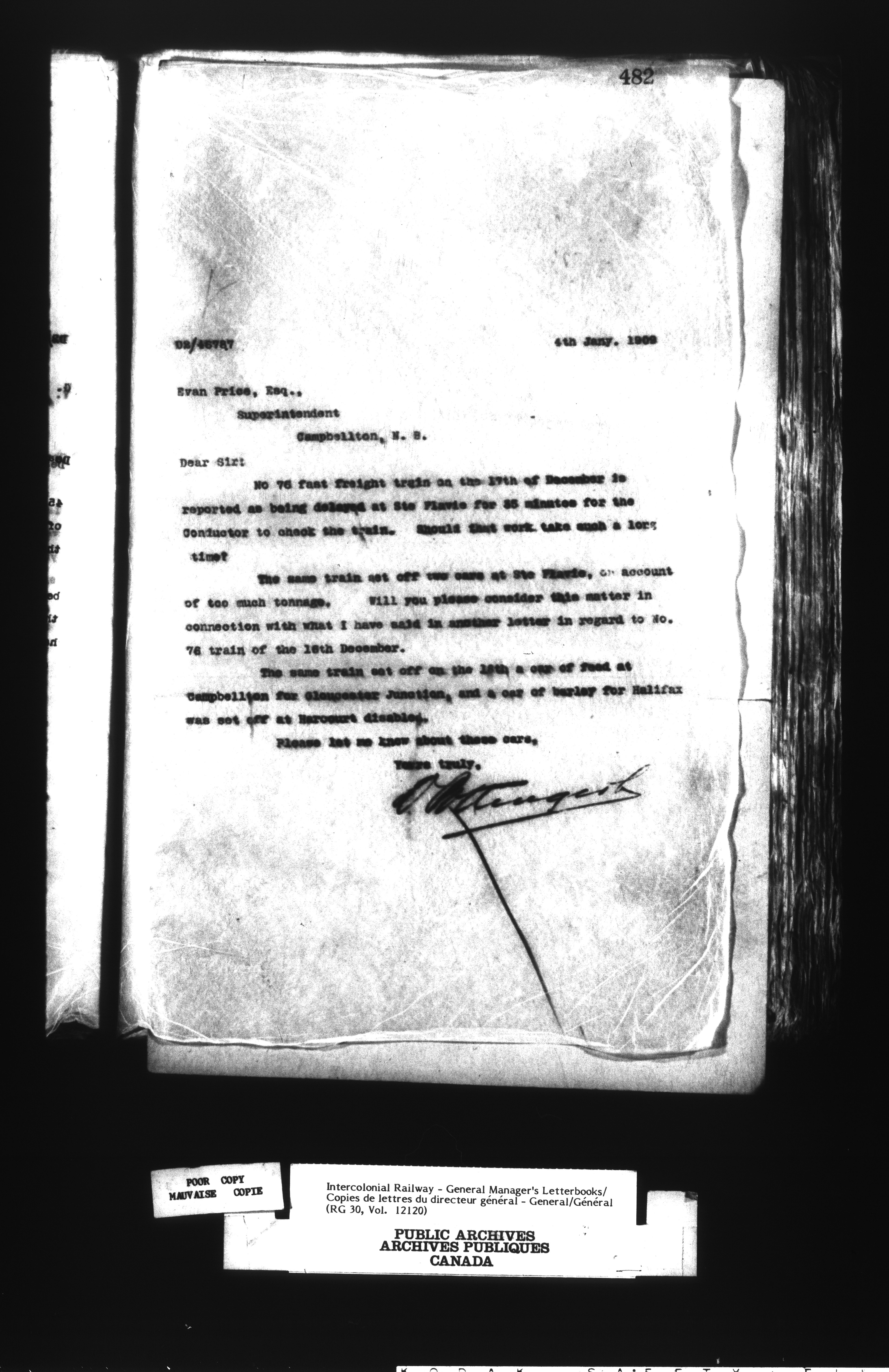 Canadian Government Railways : Office of the General Manager, Outward correspondence - 12455