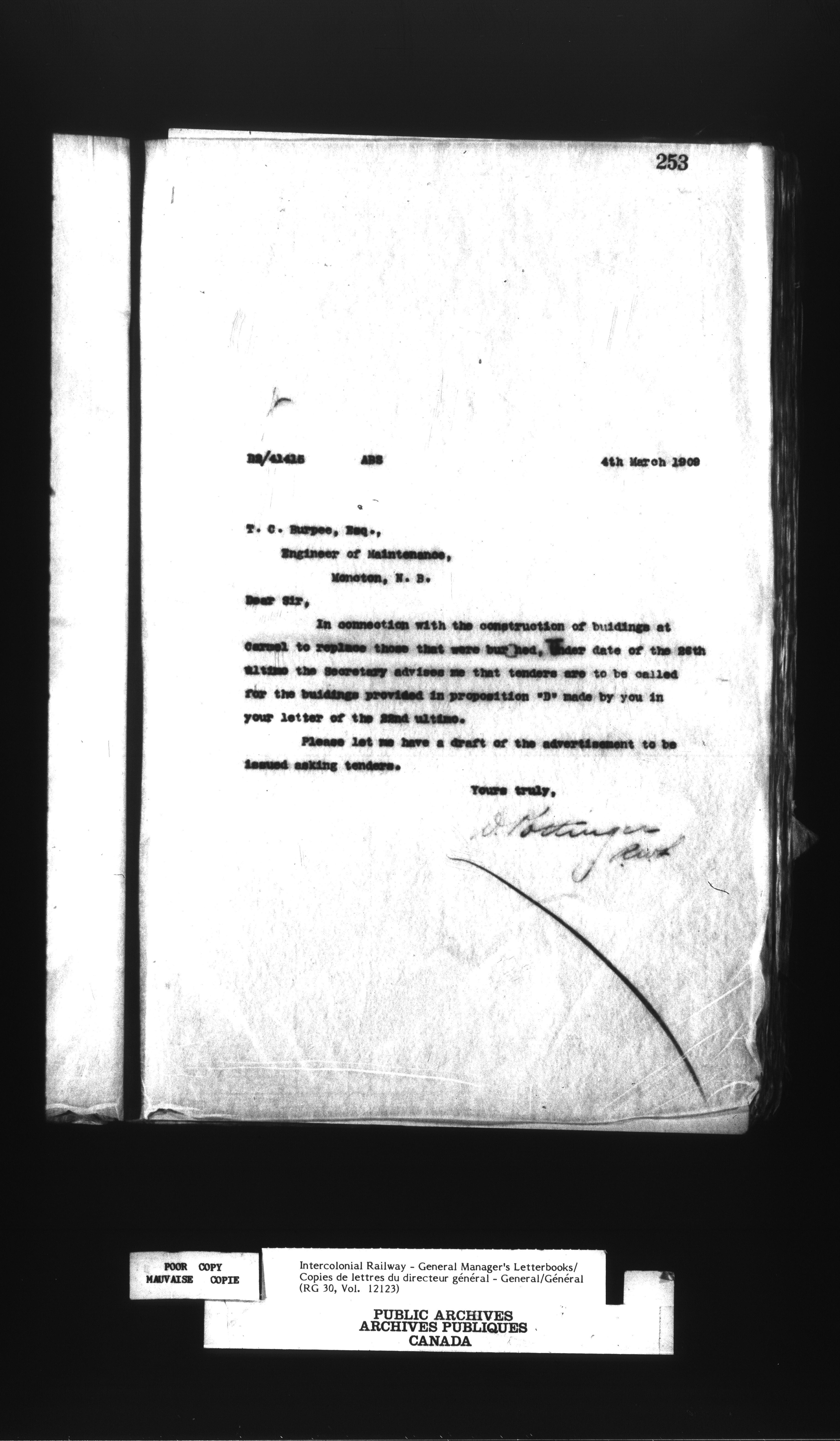 Canadian Government Railways : Office of the General Manager, Outward correspondence - 12457