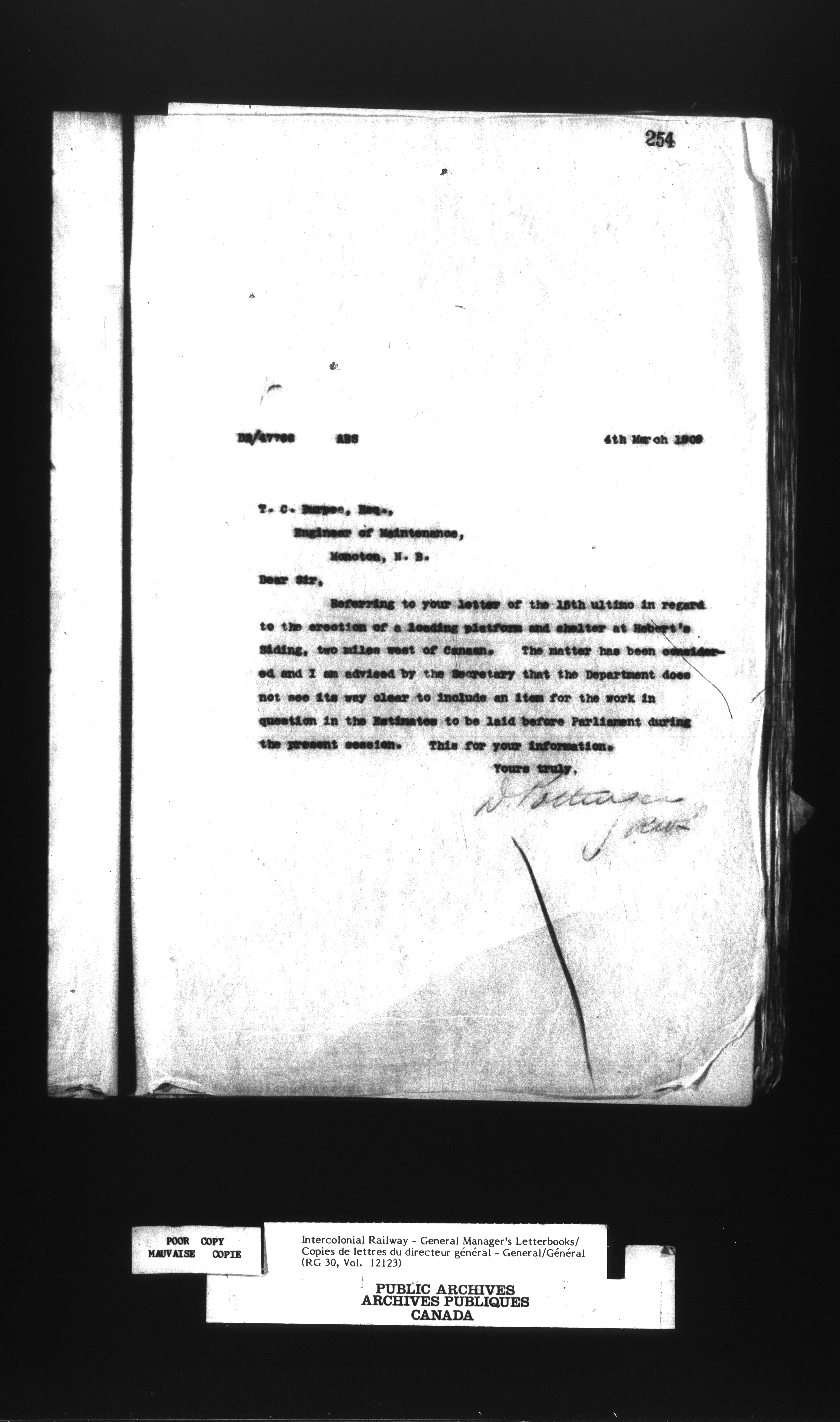 Canadian Government Railways : Office of the General Manager, Outward correspondence - 12457