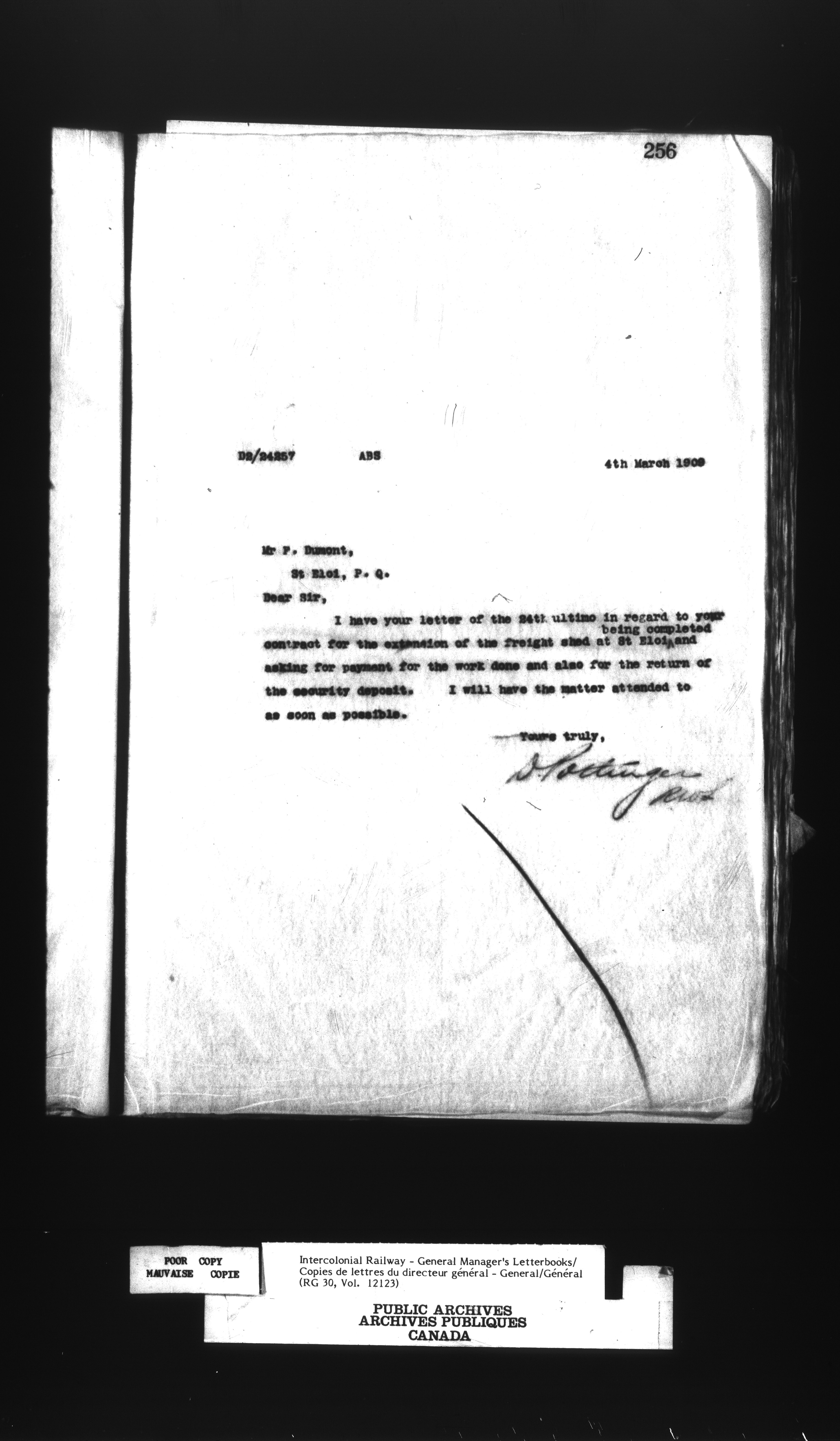 Canadian Government Railways : Office of the General Manager, Outward correspondence - 12457