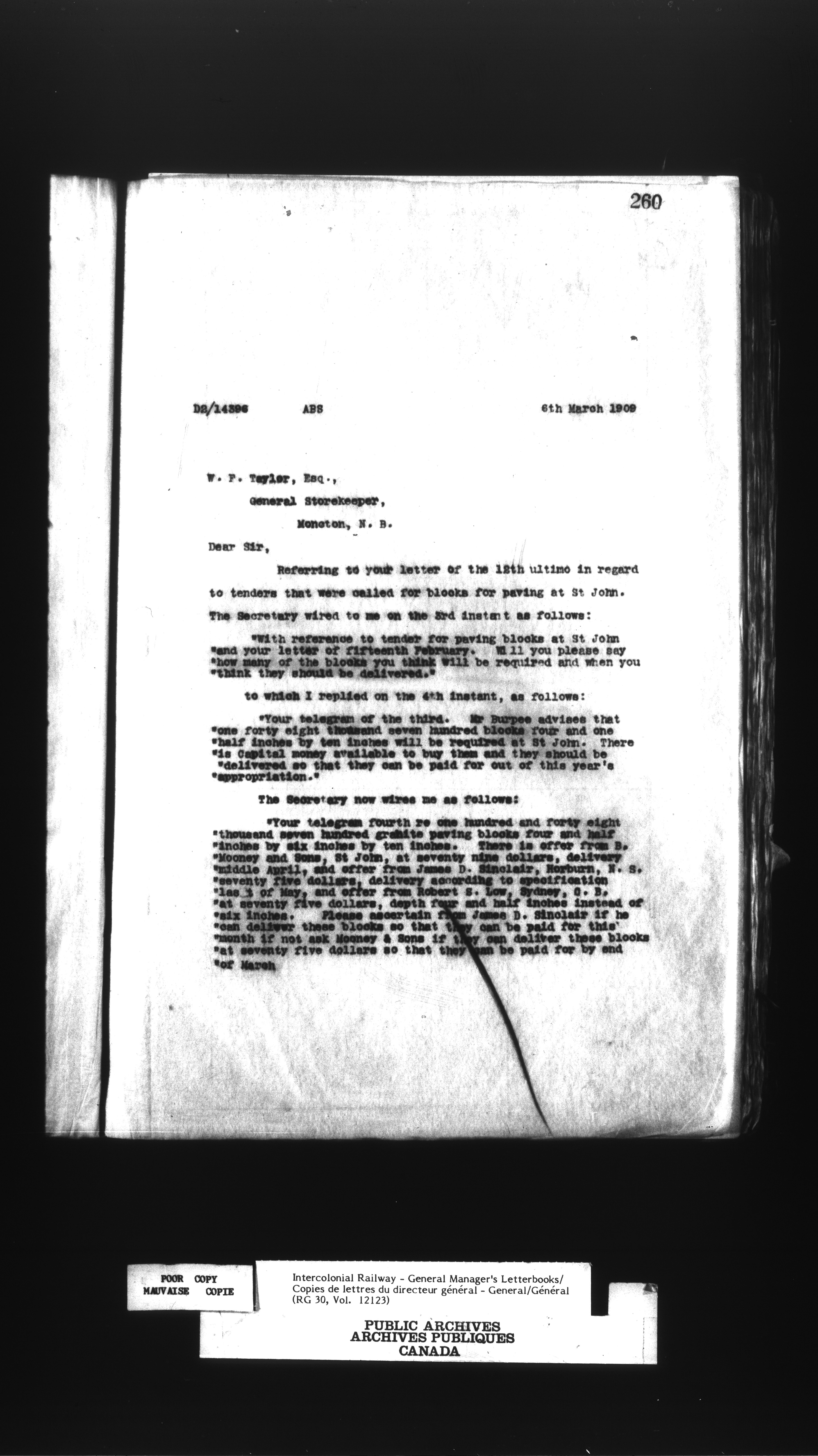 Canadian Government Railways : Office of the General Manager, Outward correspondence - 12457