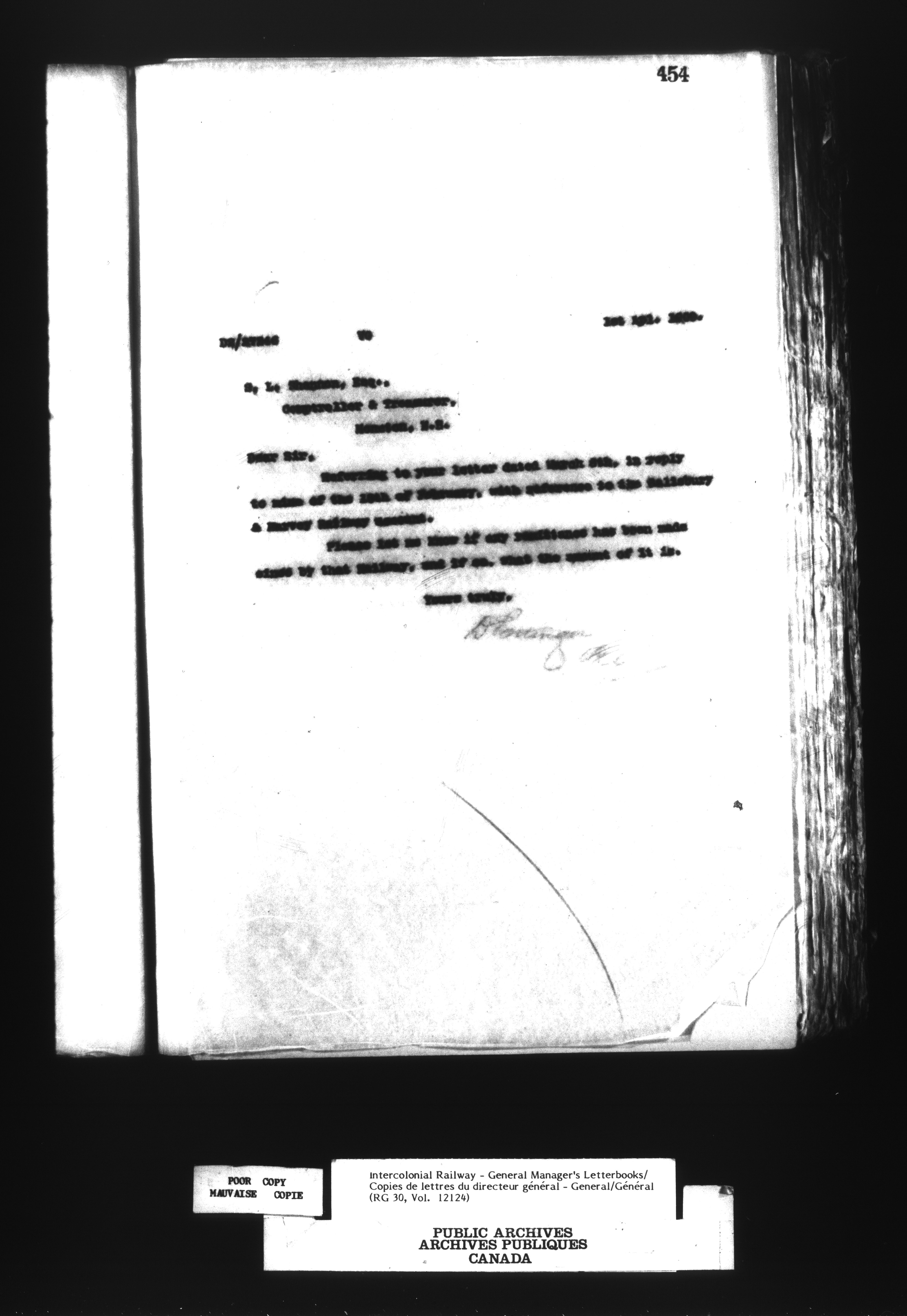 Canadian Government Railways : Office of the General Manager, Outward correspondence - 12457