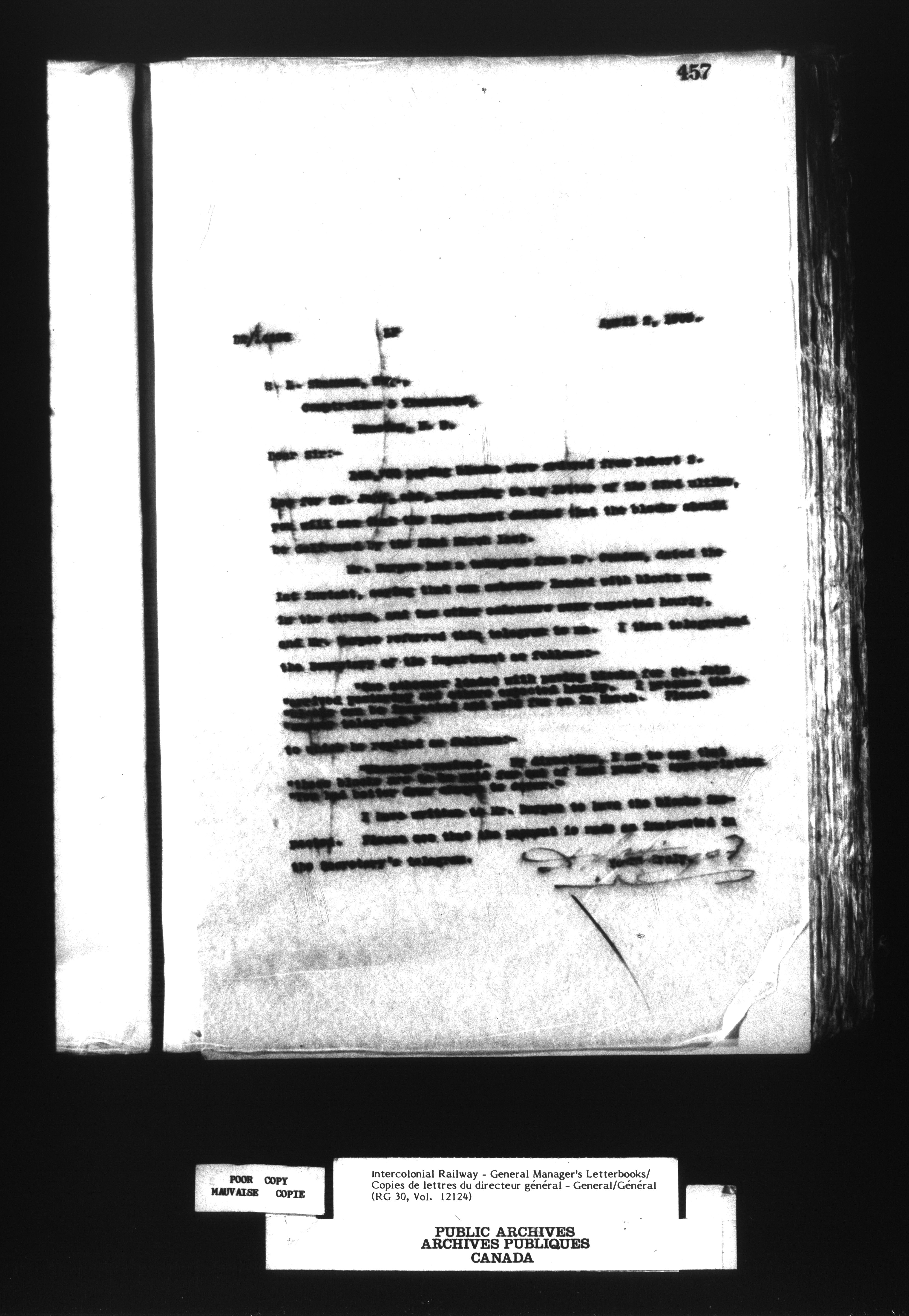 Canadian Government Railways : Office of the General Manager, Outward correspondence - 12457