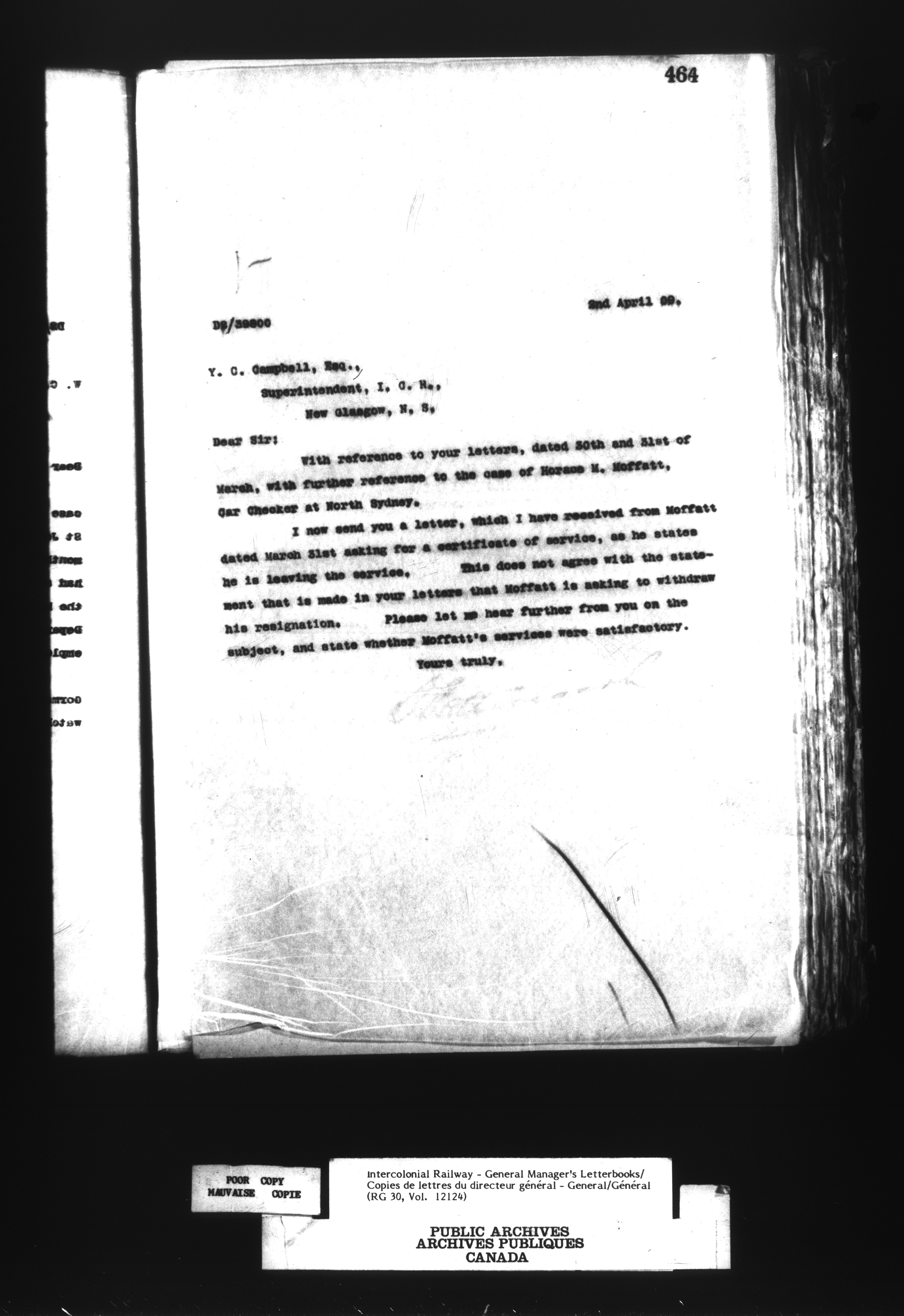 Canadian Government Railways : Office of the General Manager, Outward correspondence - 12457