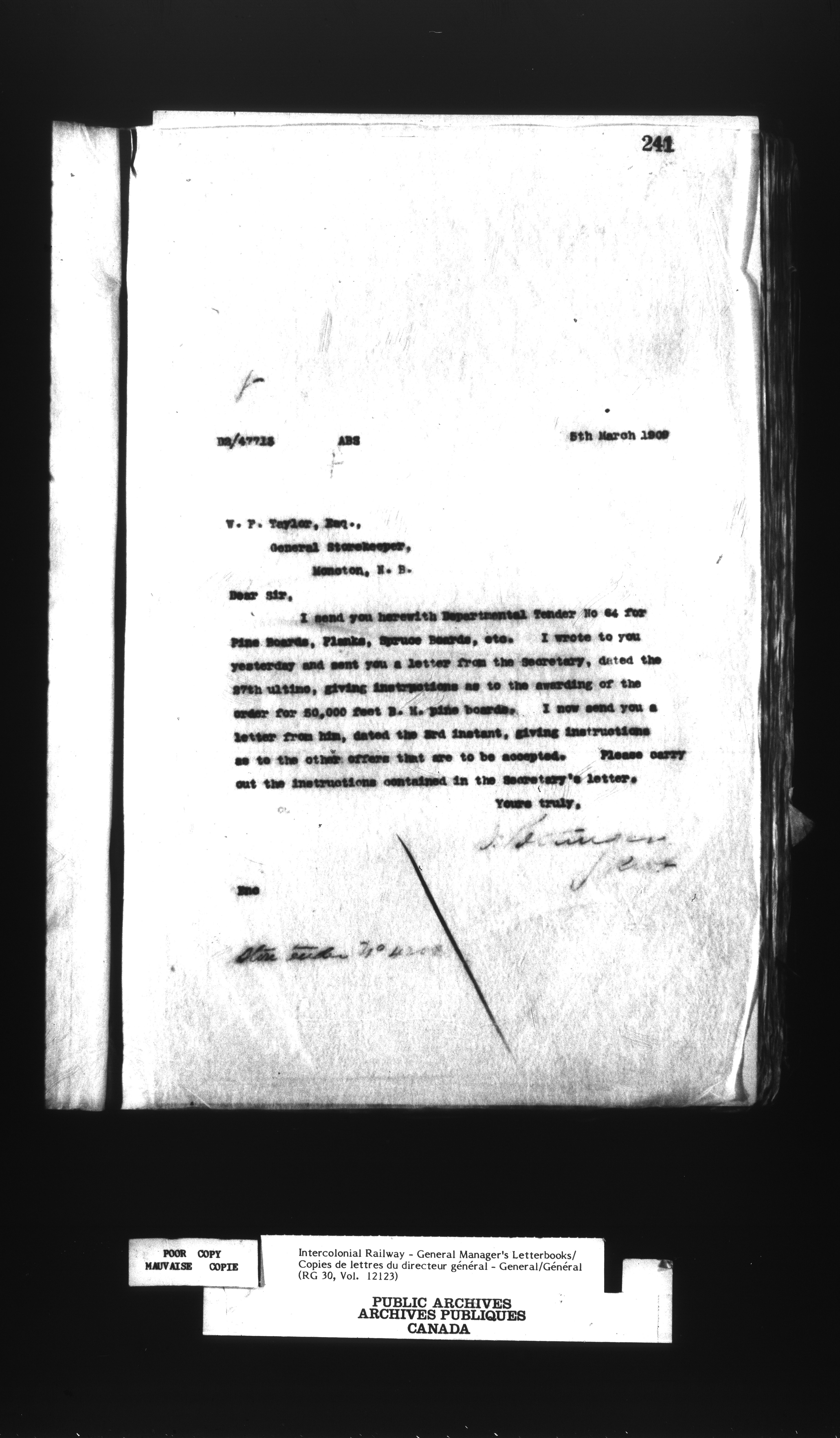 Canadian Government Railways : Office of the General Manager, Outward correspondence - 12457