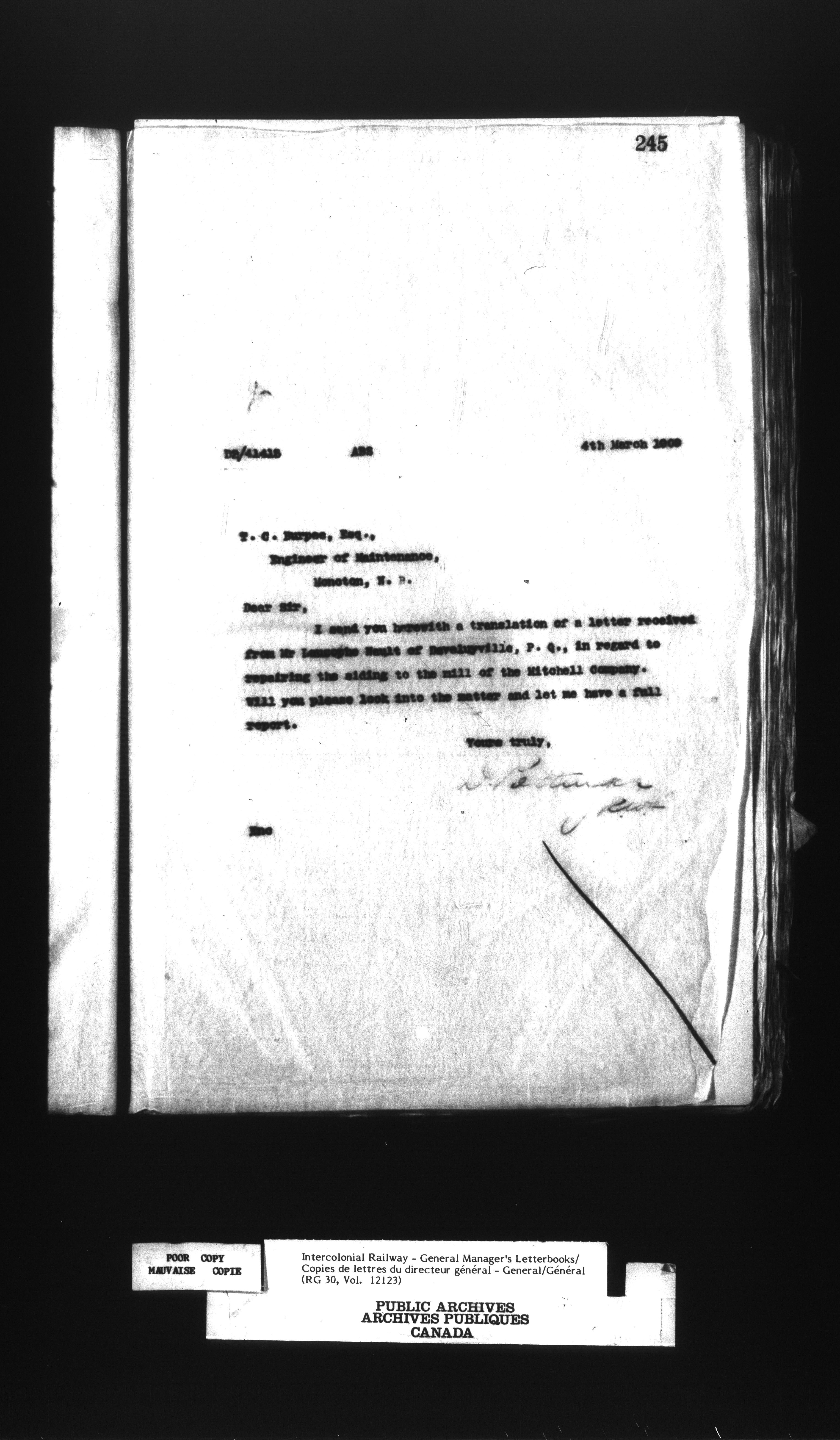 Canadian Government Railways : Office of the General Manager, Outward correspondence - 12457