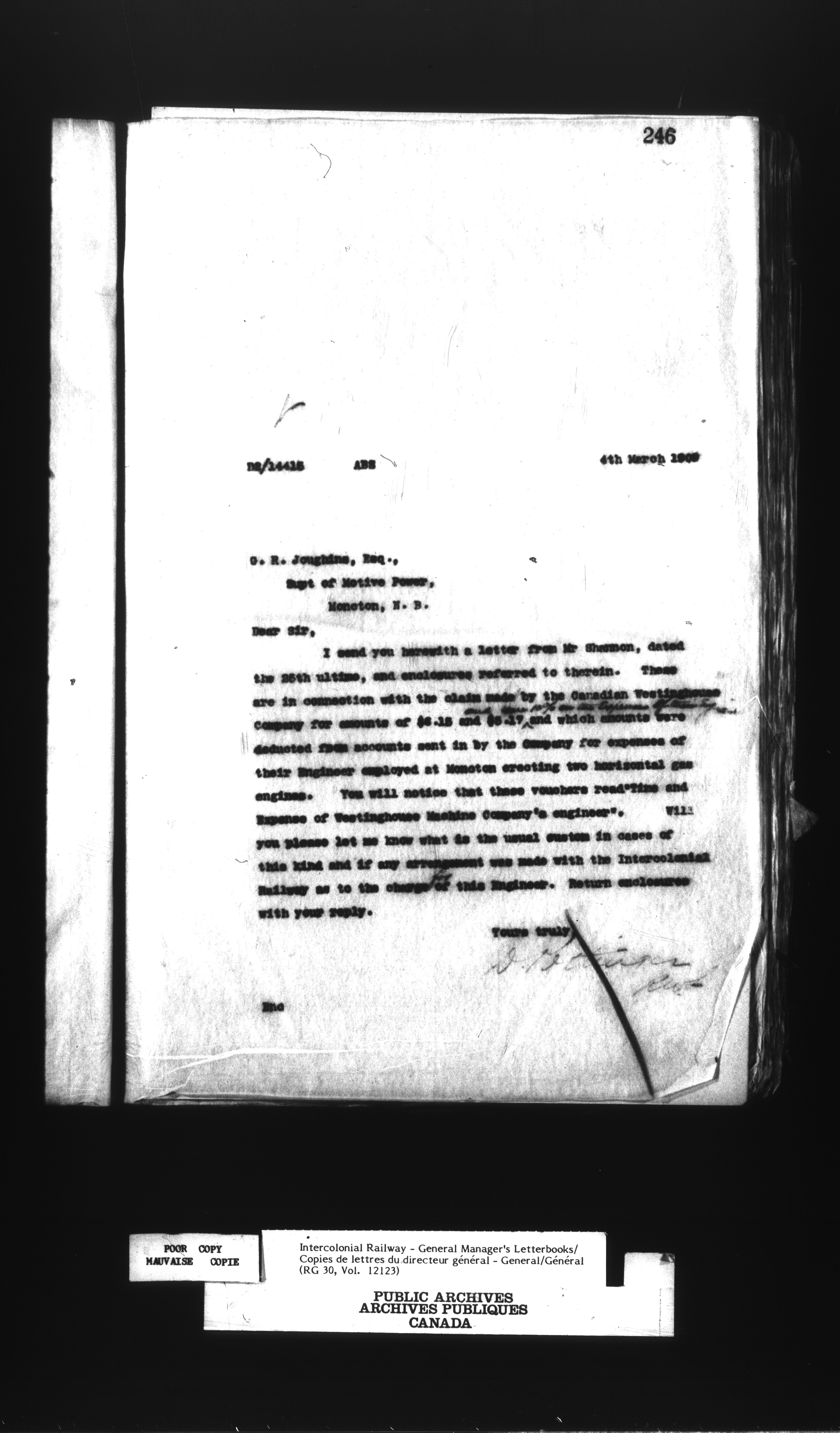 Canadian Government Railways : Office of the General Manager, Outward correspondence - 12457