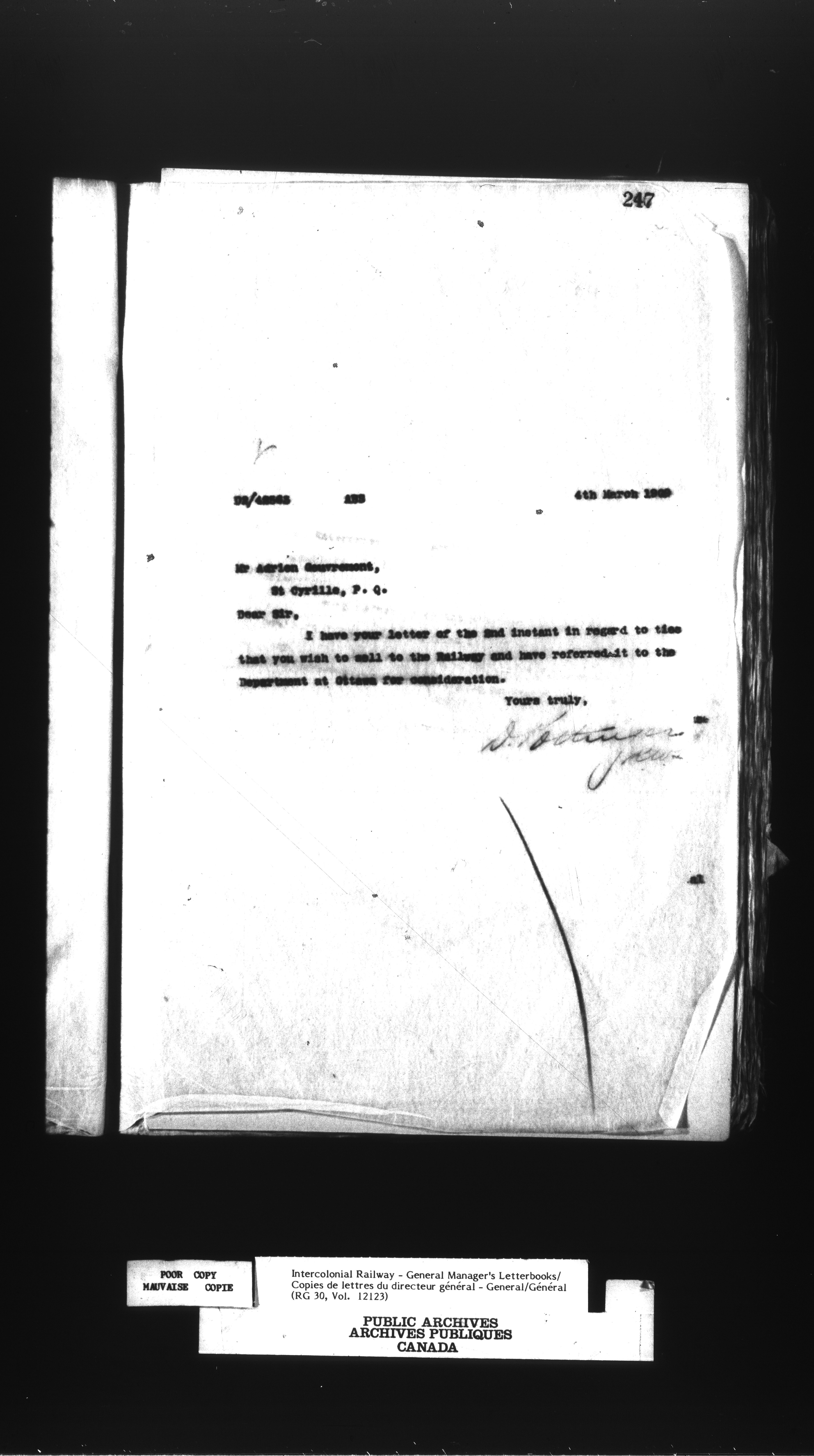 Canadian Government Railways : Office of the General Manager, Outward correspondence - 12457