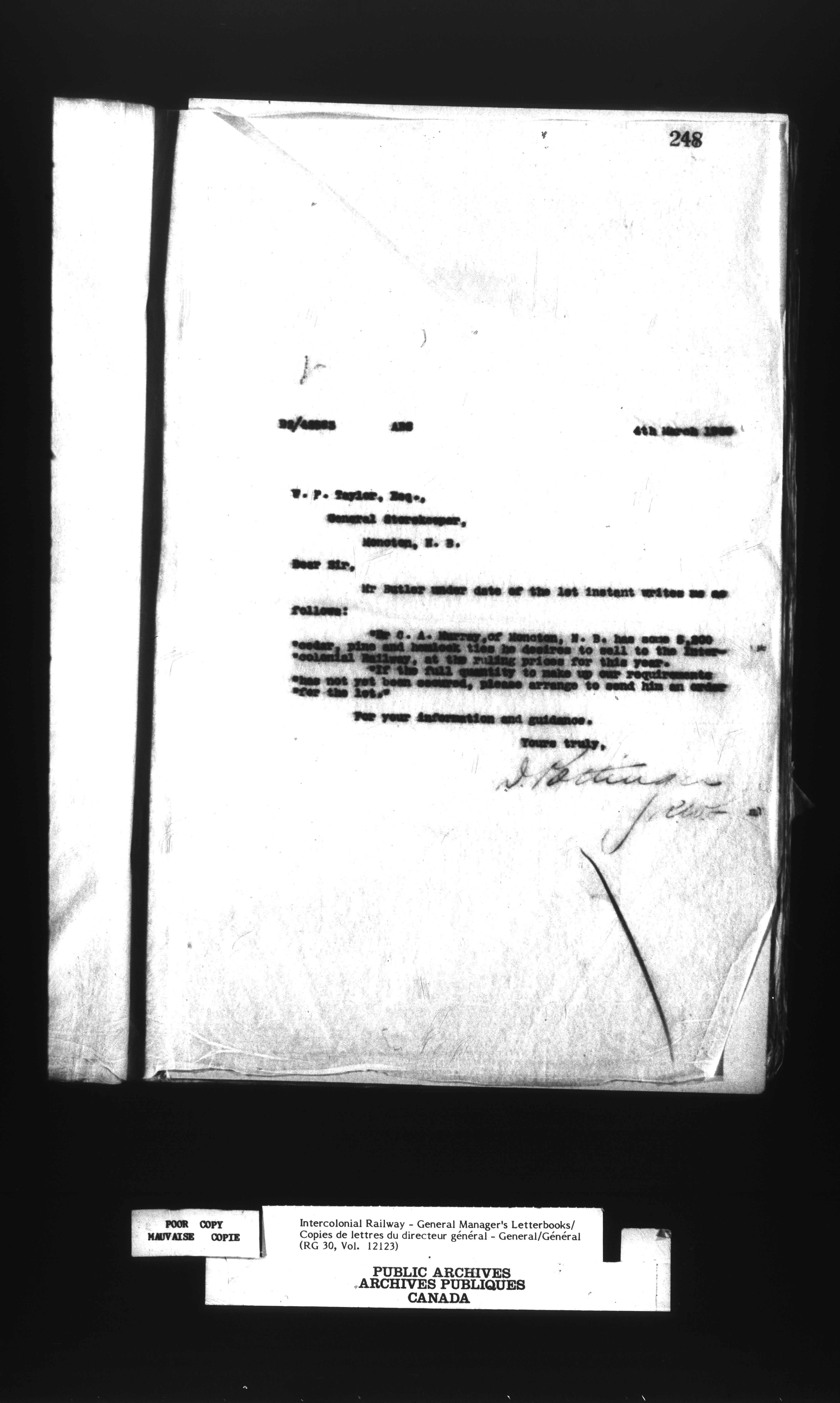 Canadian Government Railways : Office of the General Manager, Outward correspondence - 12457