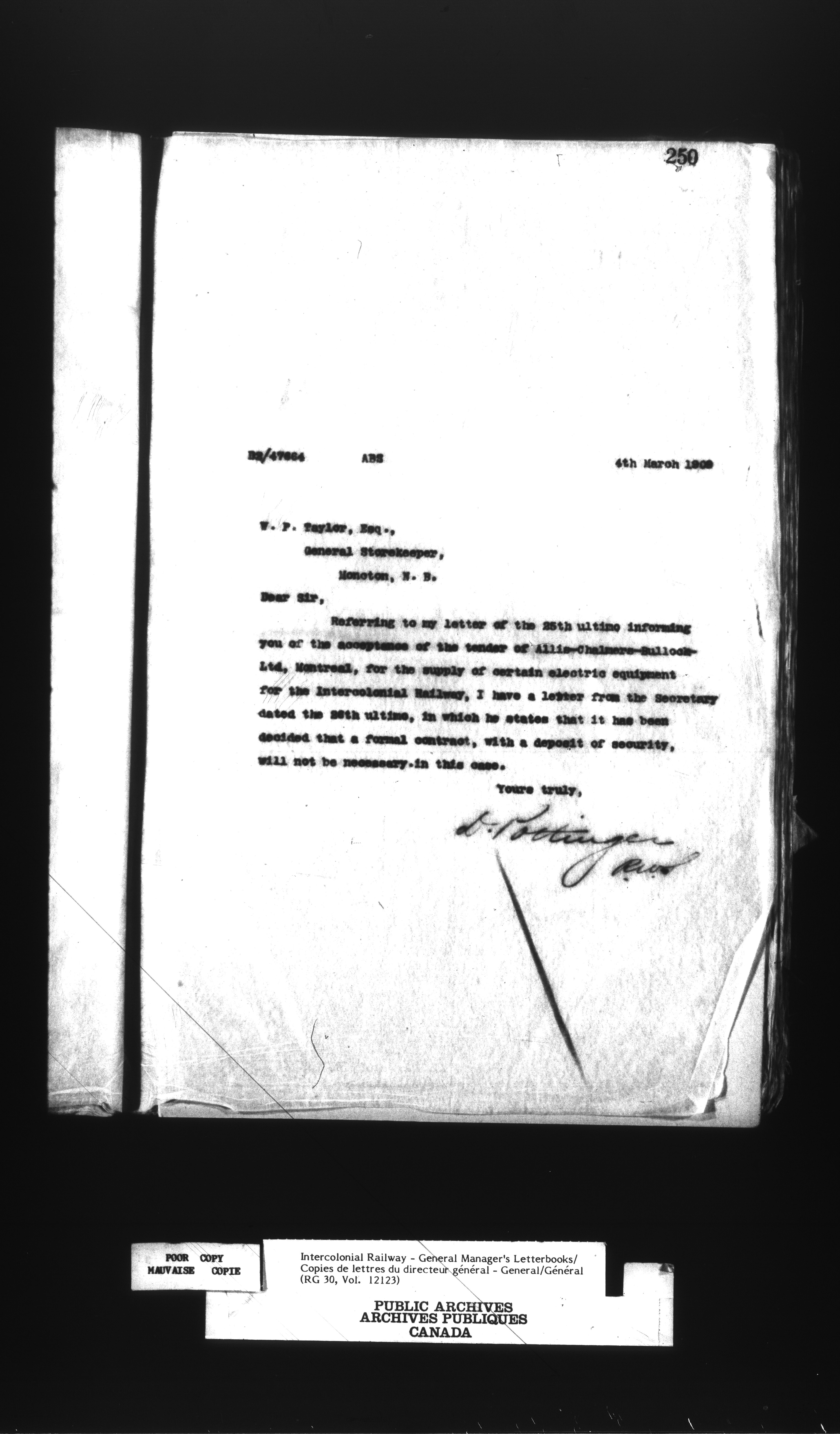 Canadian Government Railways : Office of the General Manager, Outward correspondence - 12457