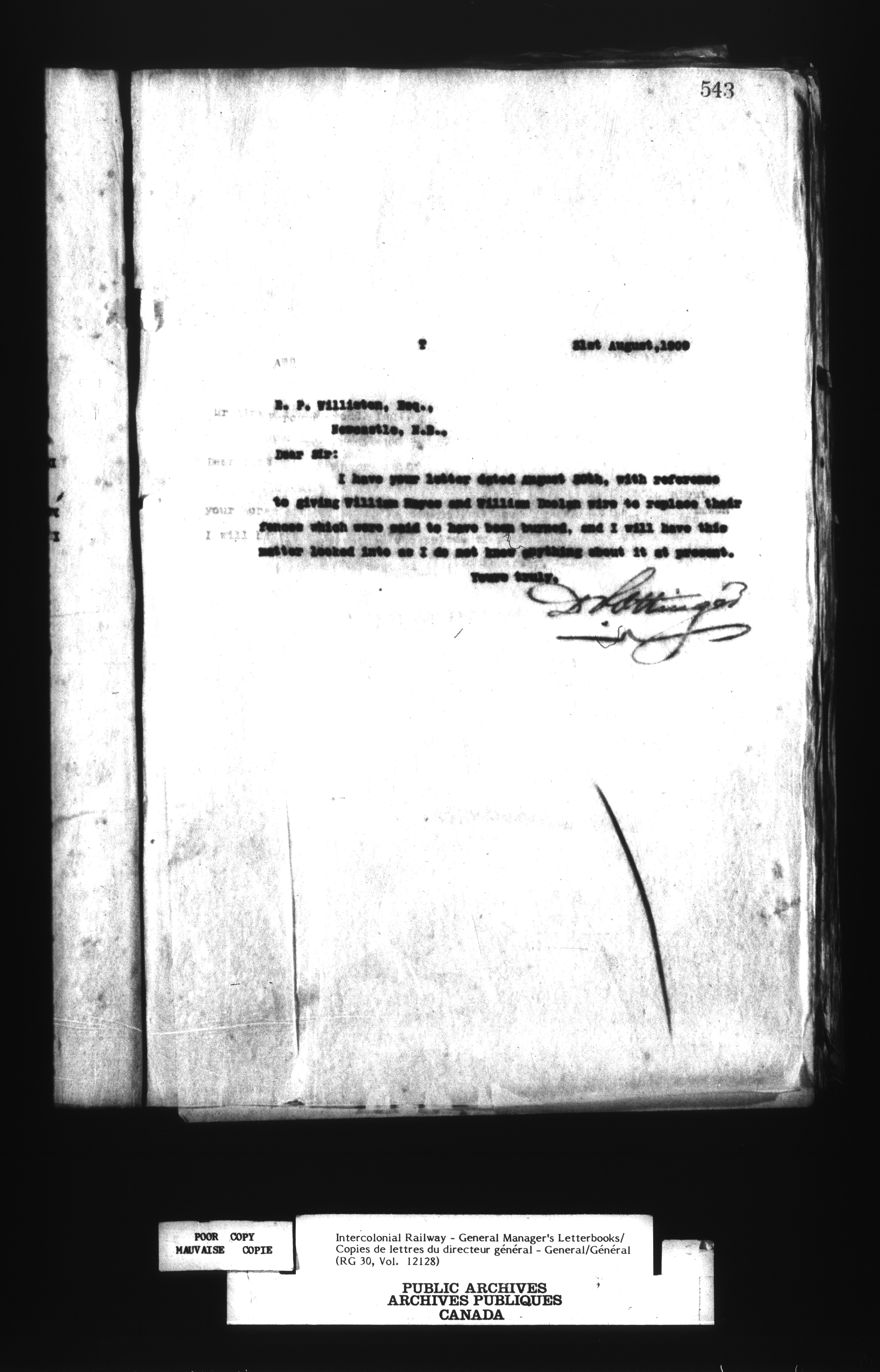 Canadian Government Railways : Office of the General Manager, Outward correspondence - 12460