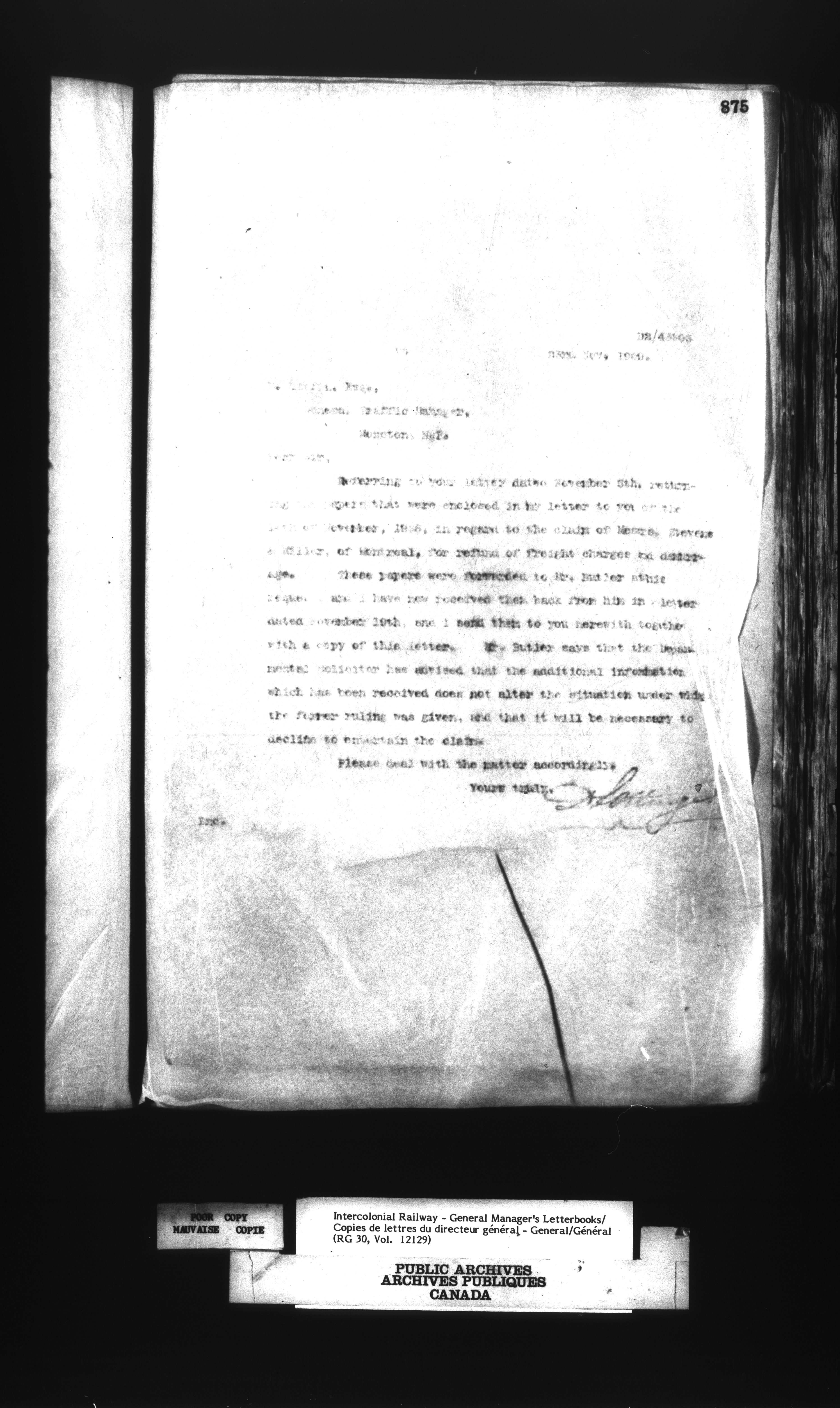 Canadian Government Railways : Office of the General Manager, Outward correspondence - 12462