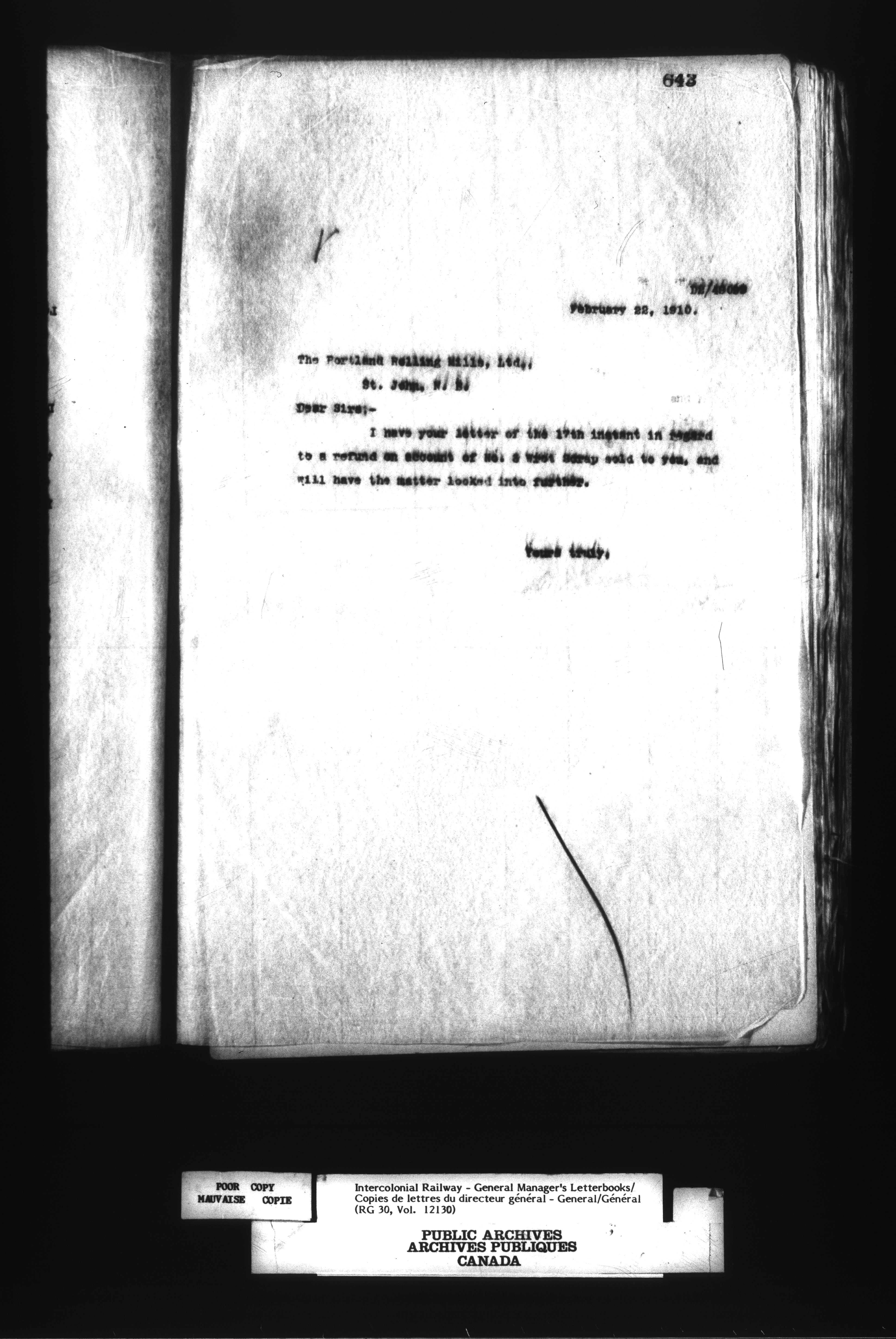Canadian Government Railways : Office of the General Manager, Outward correspondence with Department of Railways and Canals, 1893-1913 - 12463