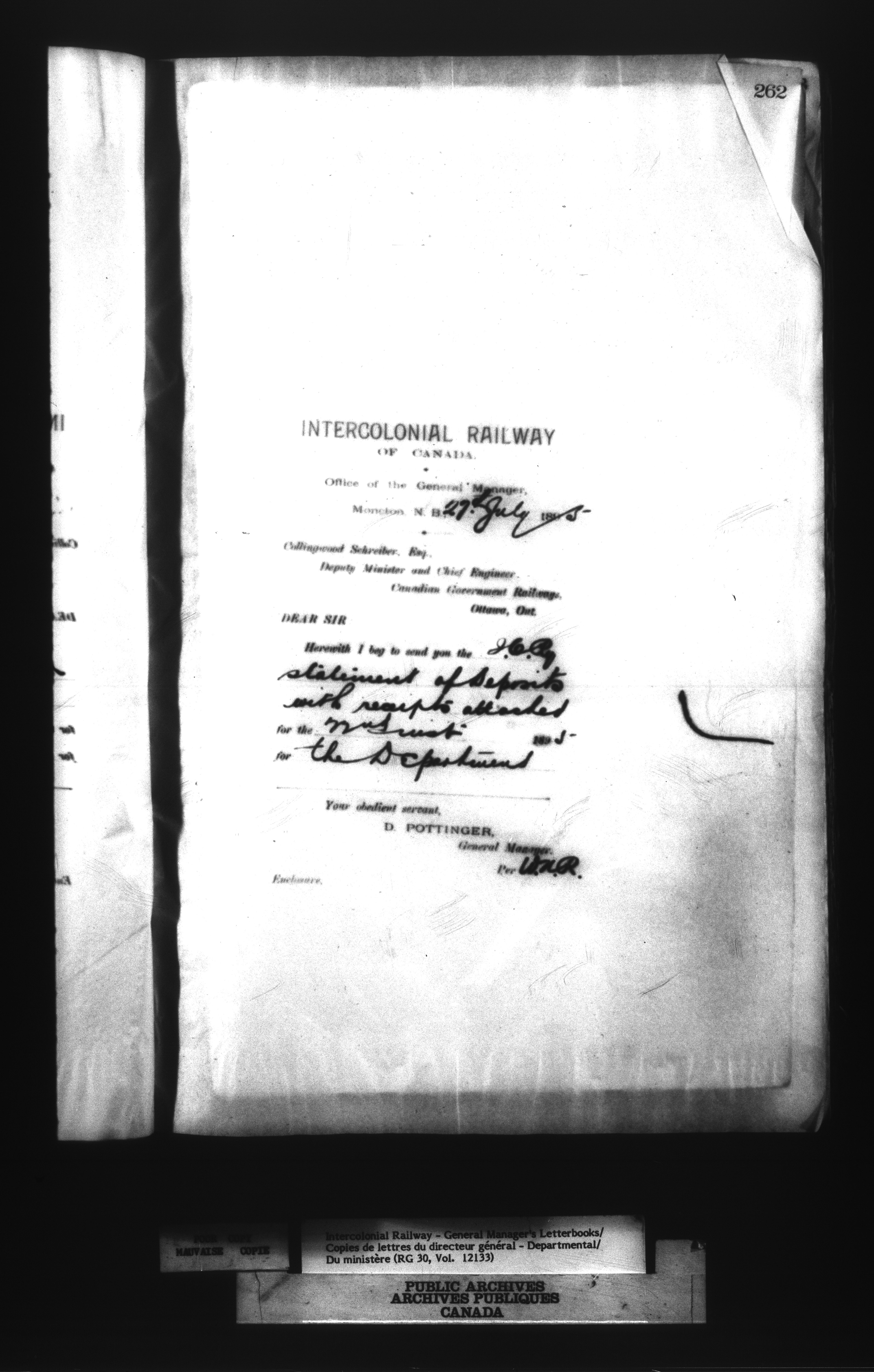 Canadian Government Railways : Office of the General Manager, Outward correspondence with Department of Railways and Canals, 1893-1913 - 12466