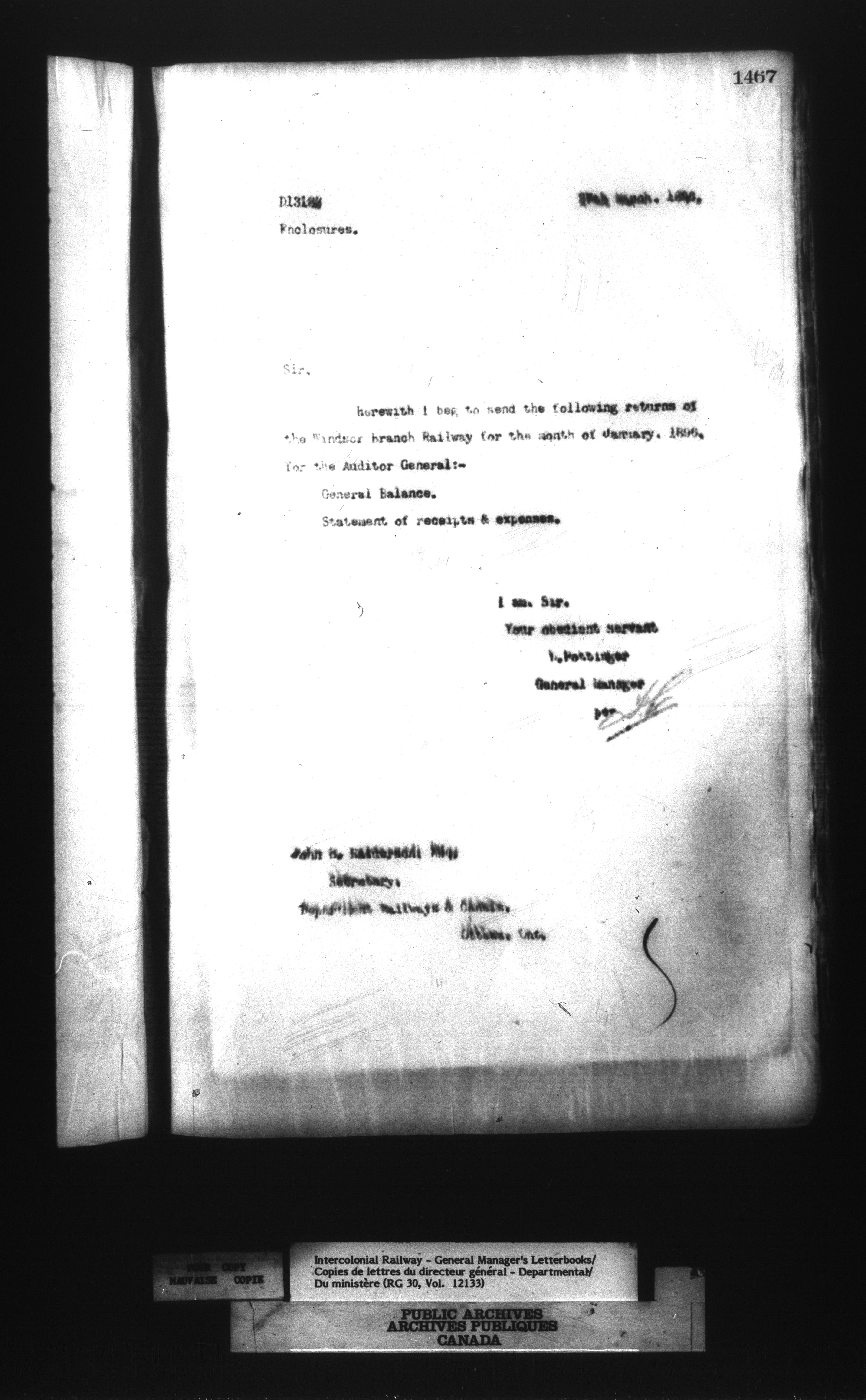 Canadian Government Railways : Office of the General Manager, Outward correspondence with Department of Railways and Canals, 1893-1913 - 12466