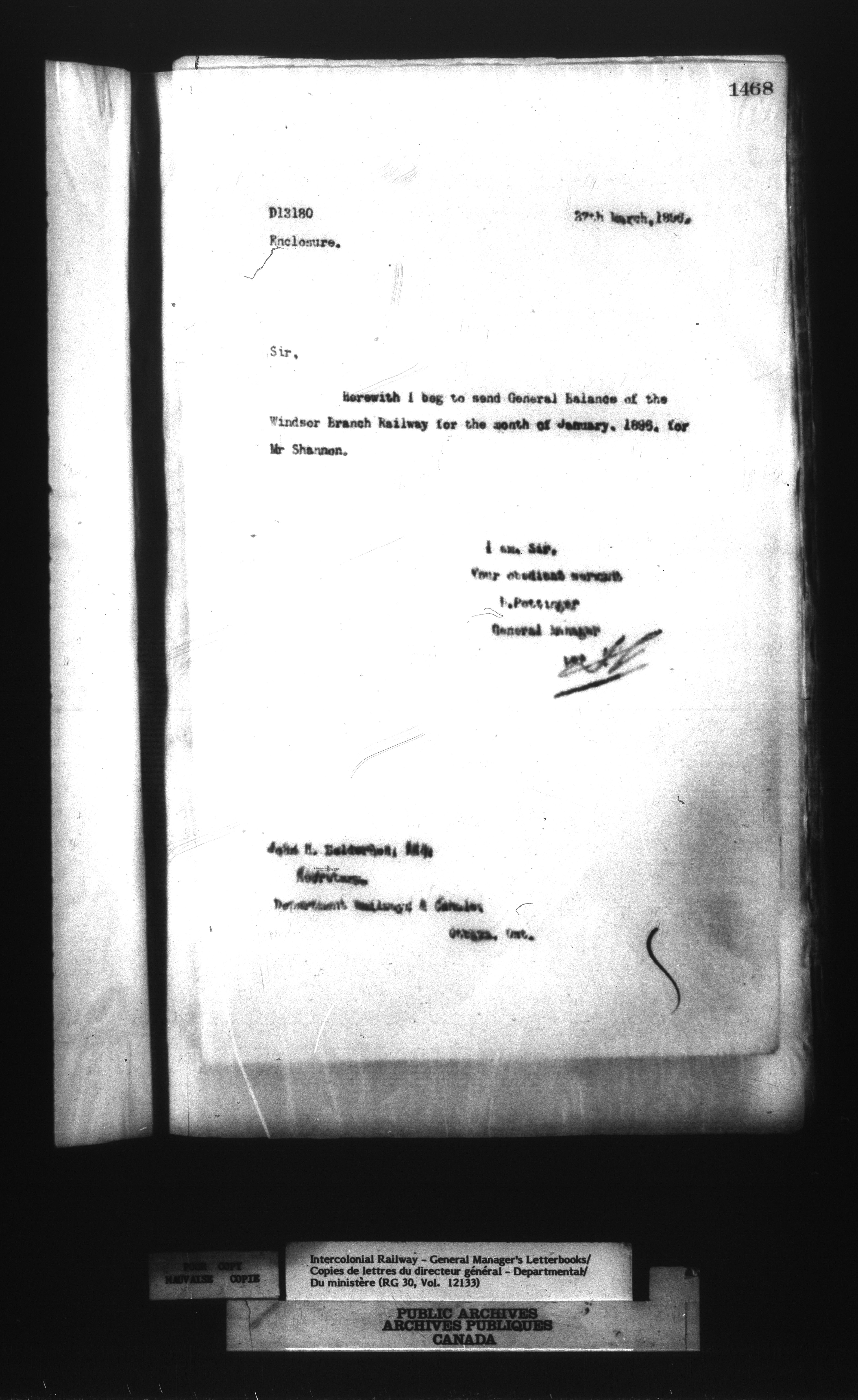 Canadian Government Railways : Office of the General Manager, Outward correspondence with Department of Railways and Canals, 1893-1913 - 12466