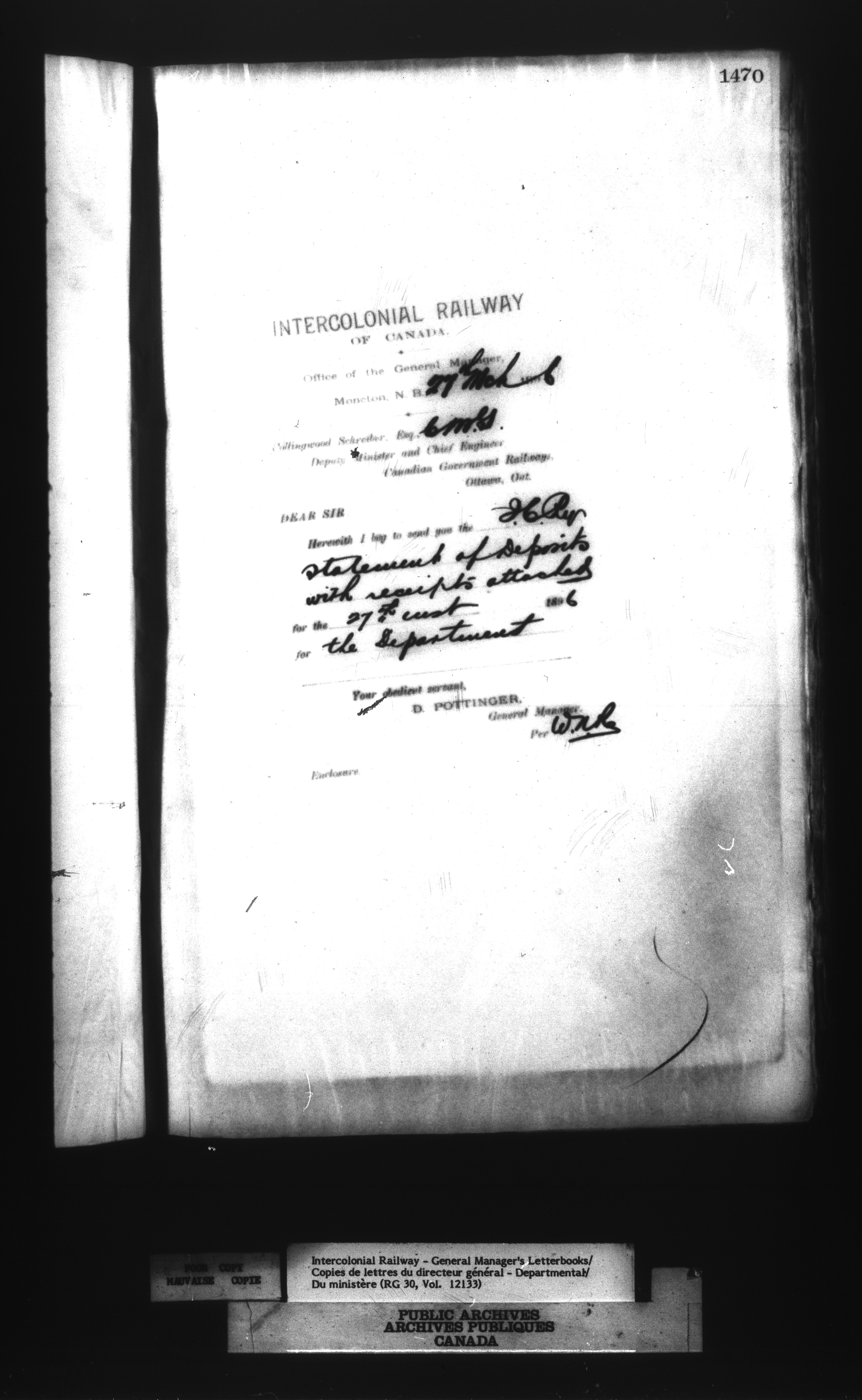 Canadian Government Railways : Office of the General Manager, Outward correspondence with Department of Railways and Canals, 1893-1913 - 12466