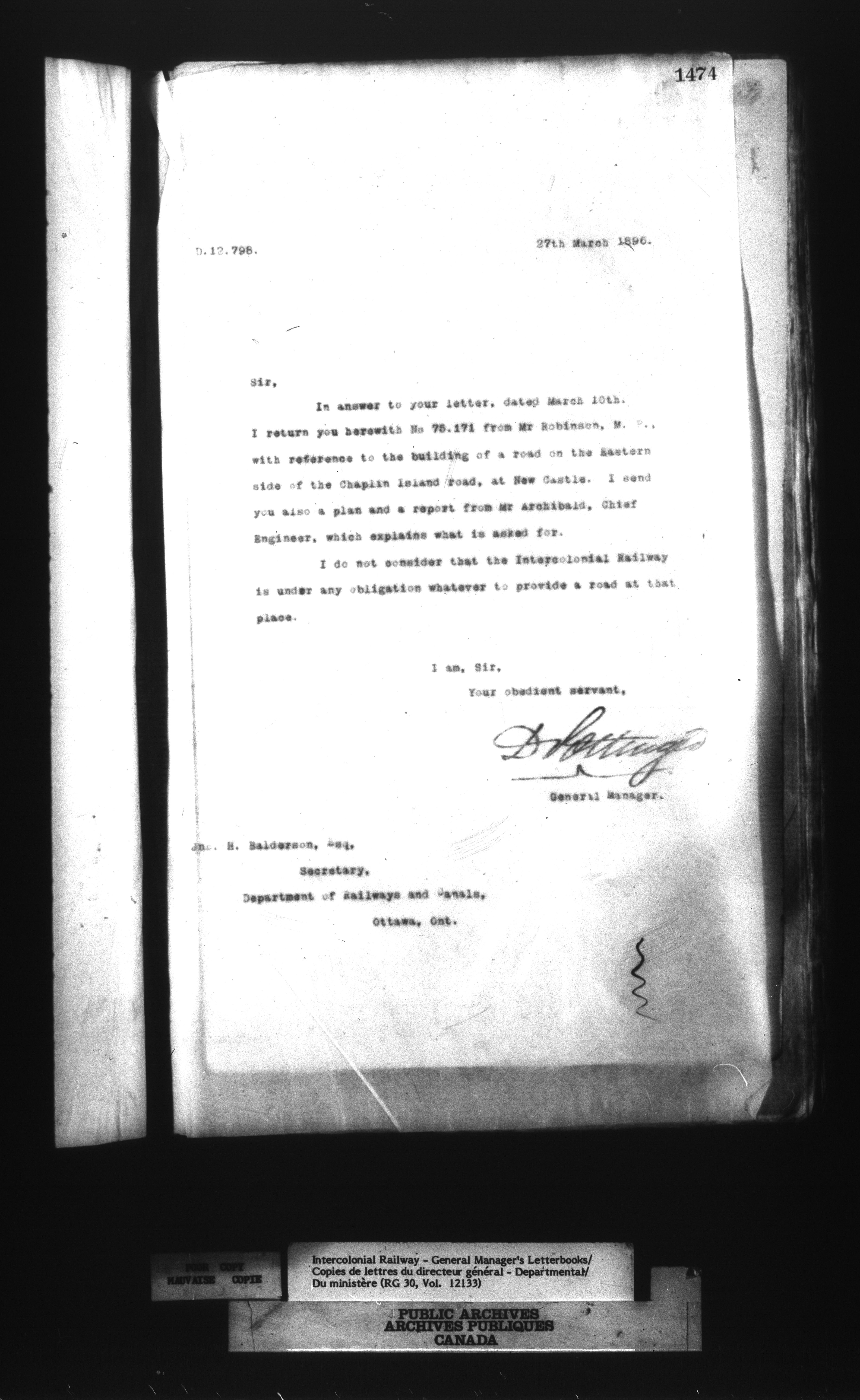 Canadian Government Railways : Office of the General Manager, Outward correspondence with Department of Railways and Canals, 1893-1913 - 12466