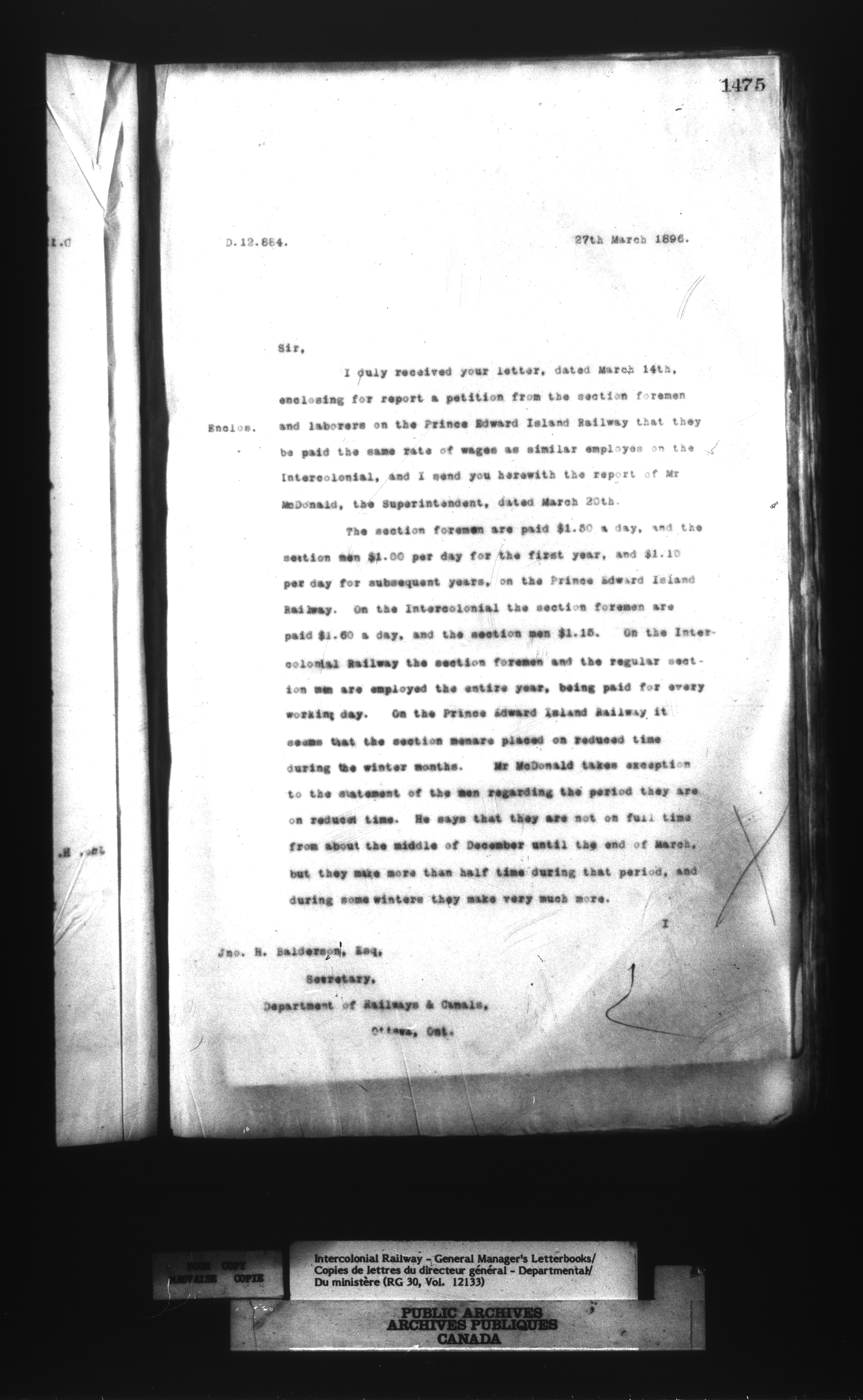 Canadian Government Railways : Office of the General Manager, Outward correspondence with Department of Railways and Canals, 1893-1913 - 12466