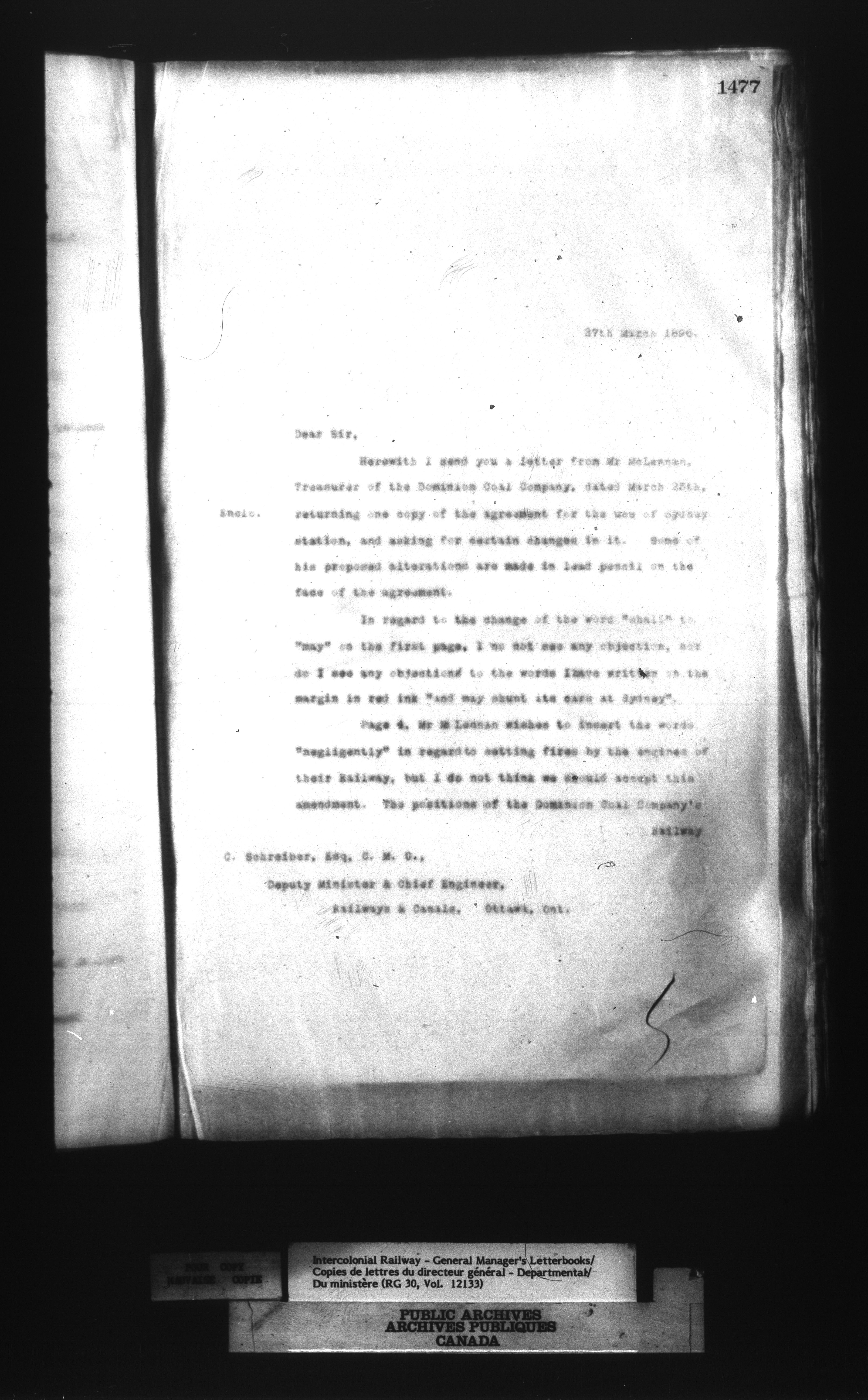Canadian Government Railways : Office of the General Manager, Outward correspondence with Department of Railways and Canals, 1893-1913 - 12466