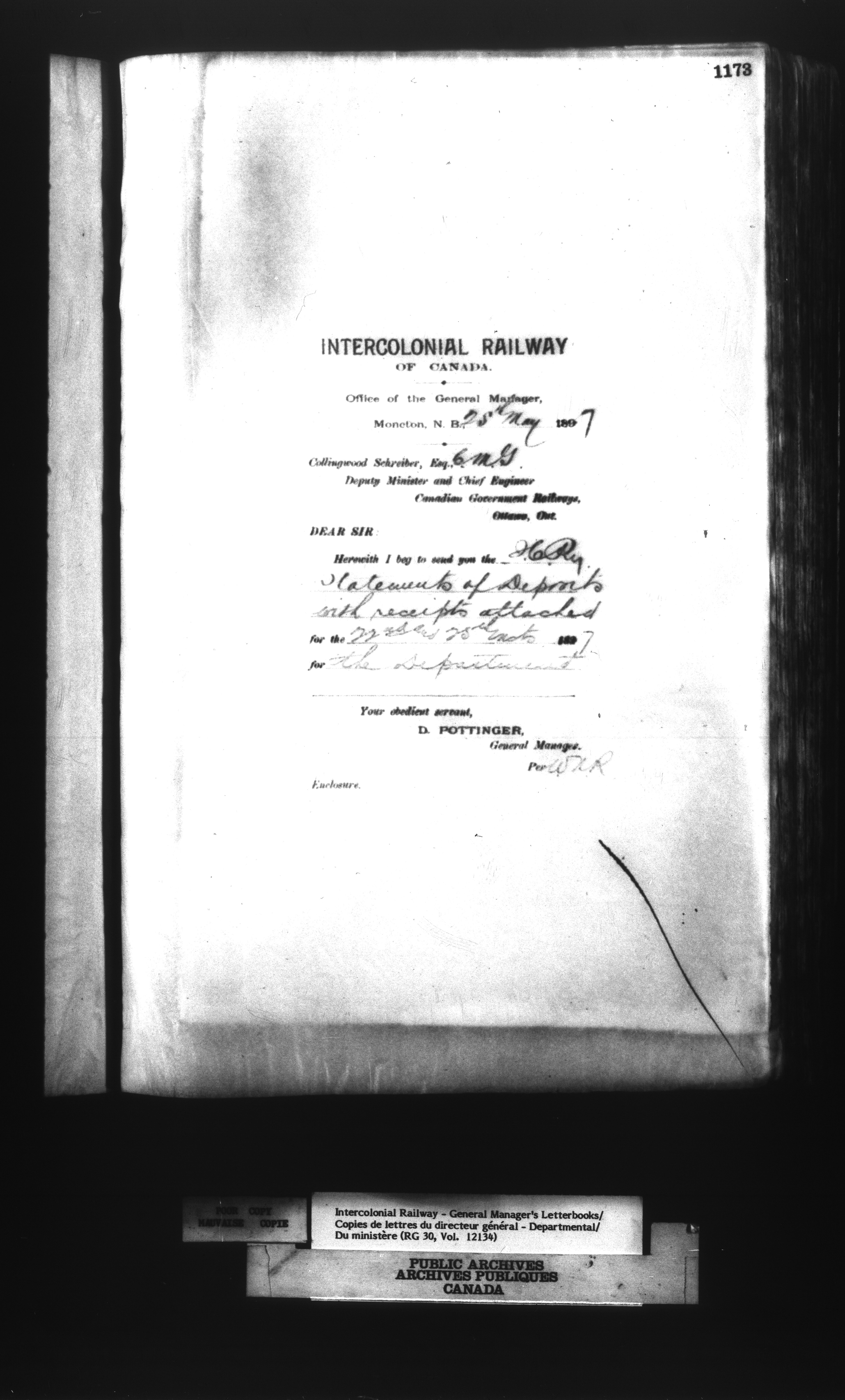 Canadian Government Railways : Office of the General Manager, Outward correspondence with Department of Railways and Canals, 1893-1913 - 12468
