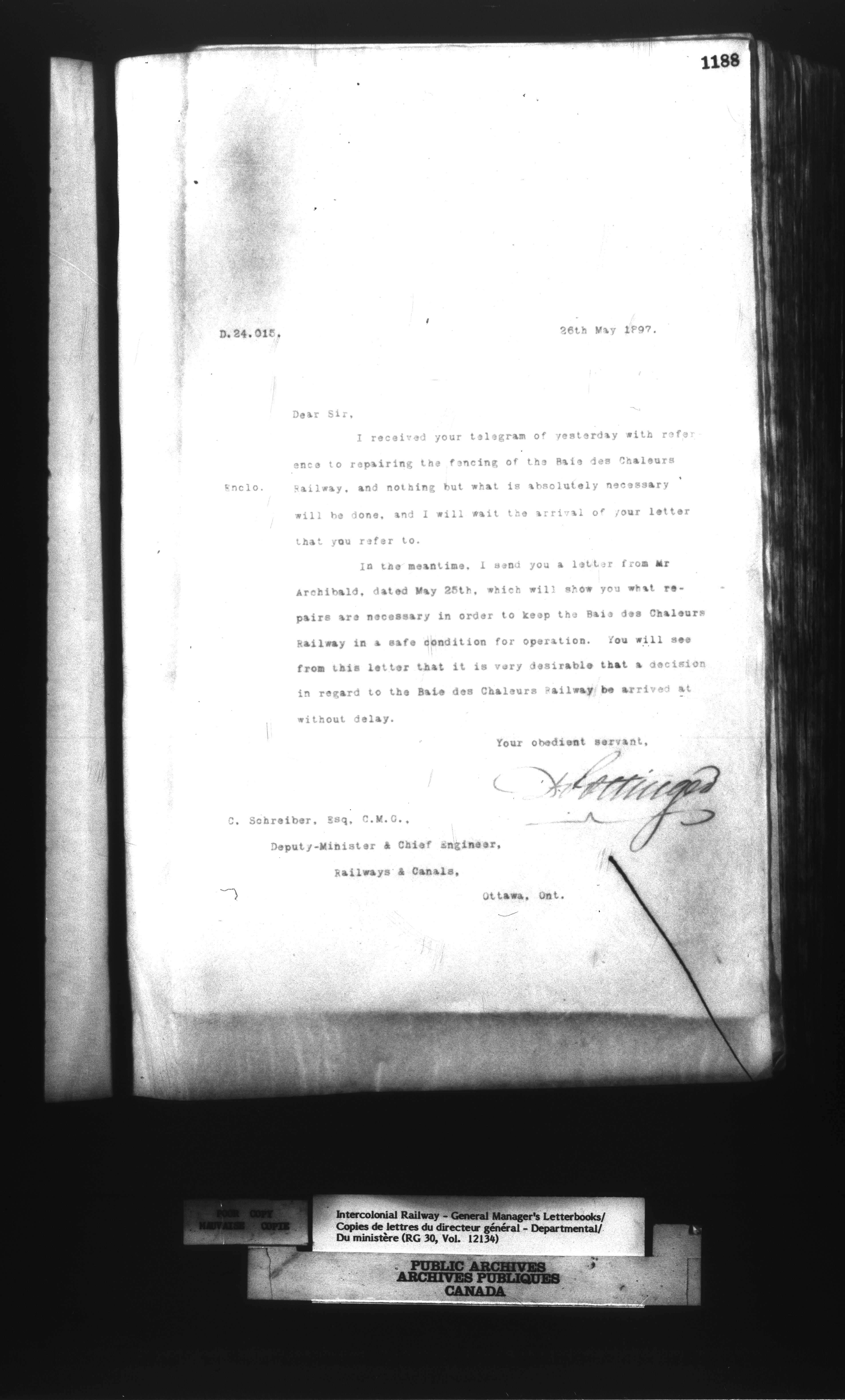 Canadian Government Railways : Office of the Chief Superintendent, Outward correspondence : C-12468