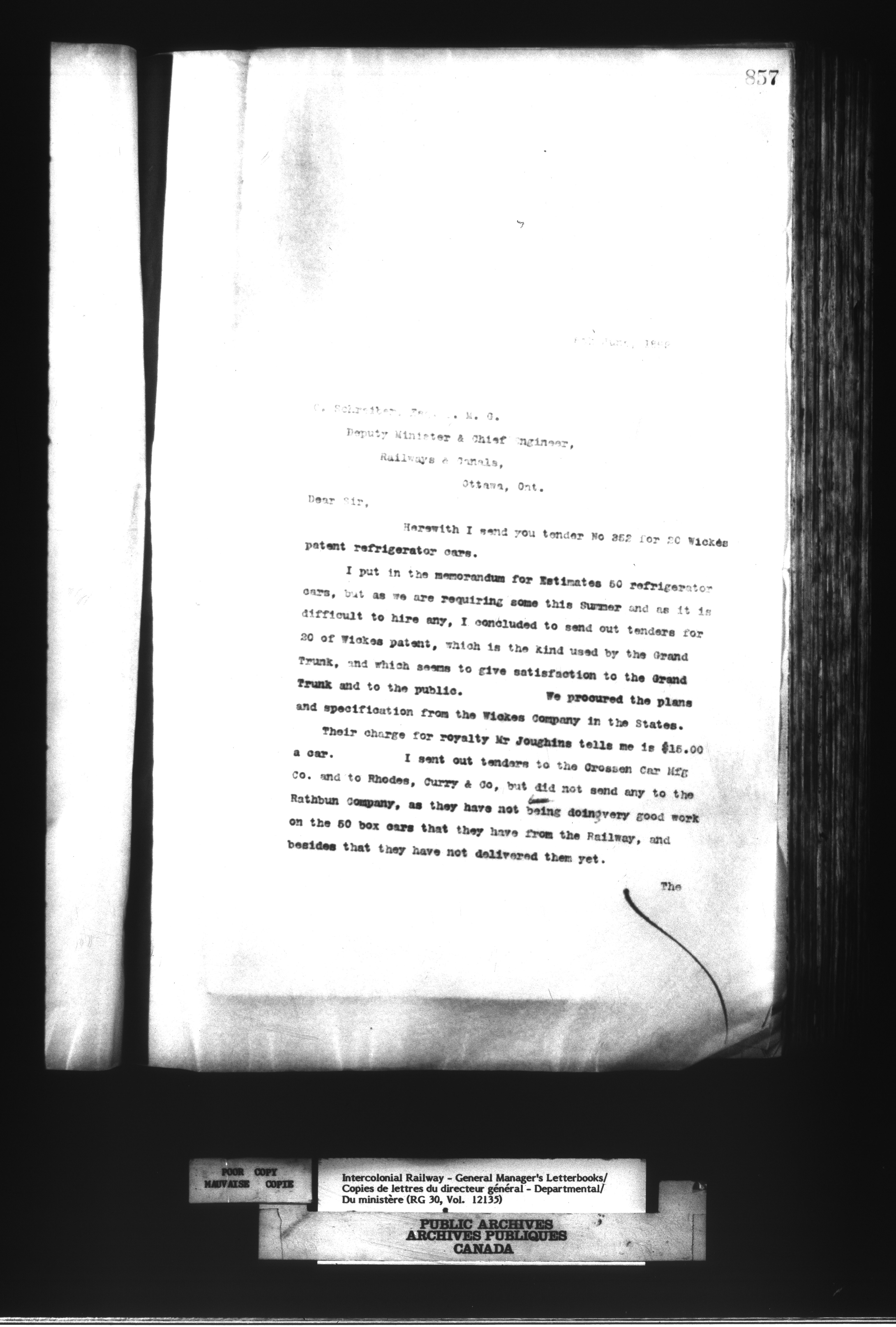 Canadian Government Railways : Office of the General Manager, Outward correspondence with Department of Railways and Canals, 1893-1913 - 12469
