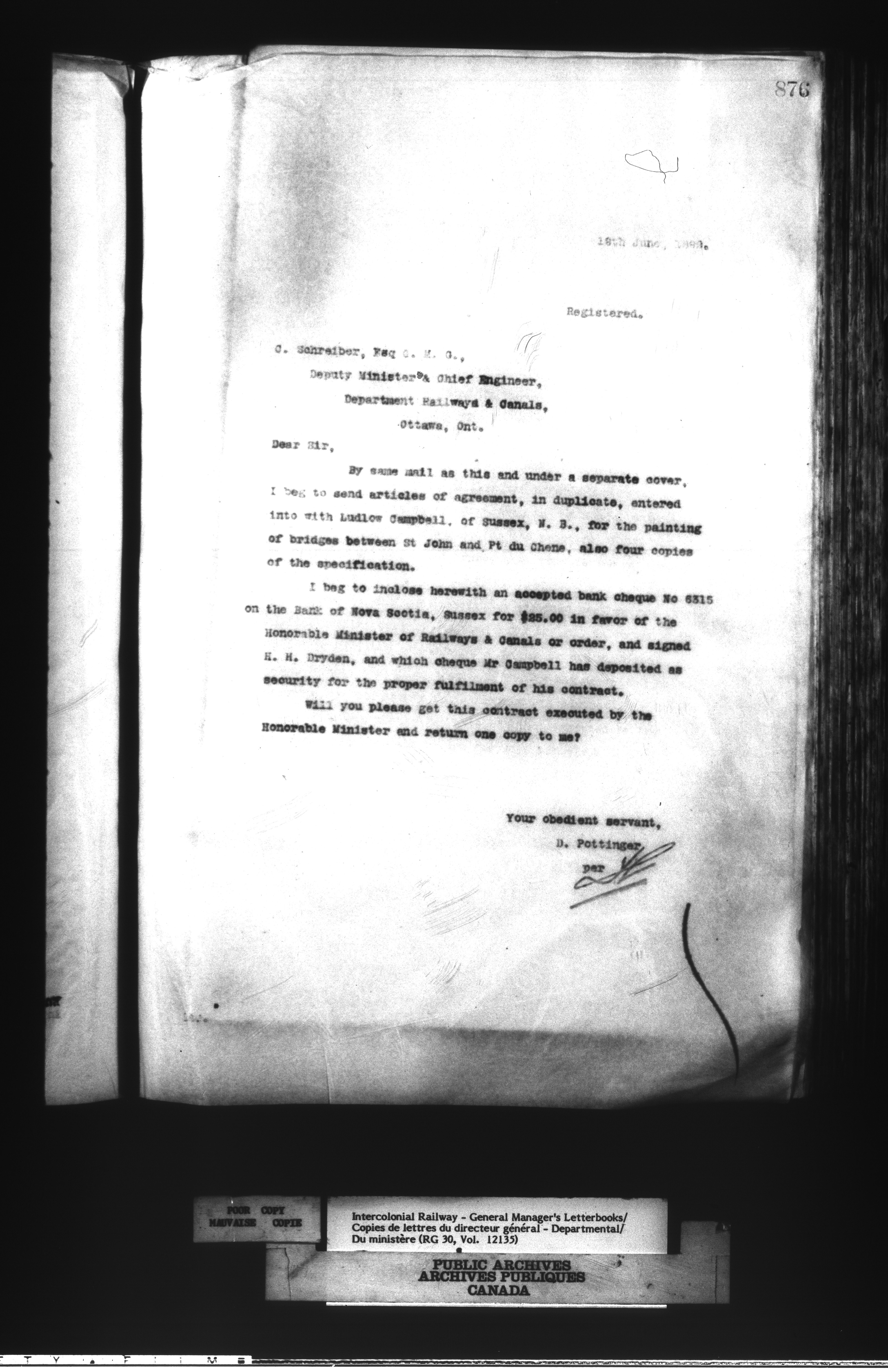 Canadian Government Railways : Office of the Chief Superintendent, Outward correspondence : C-12469