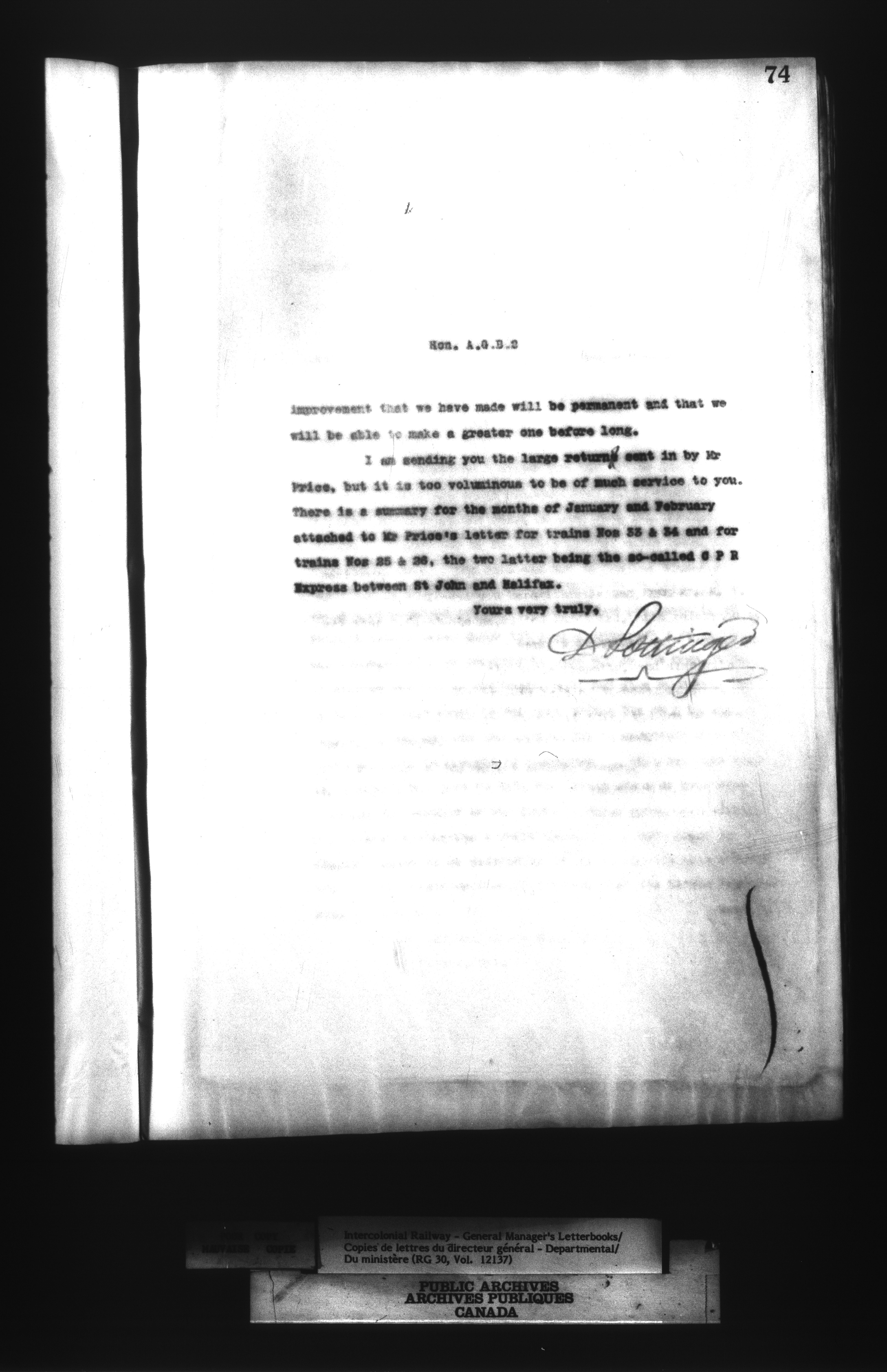 Canadian Government Railways : Office of the Chief Superintendent, Outward correspondence : C-12470