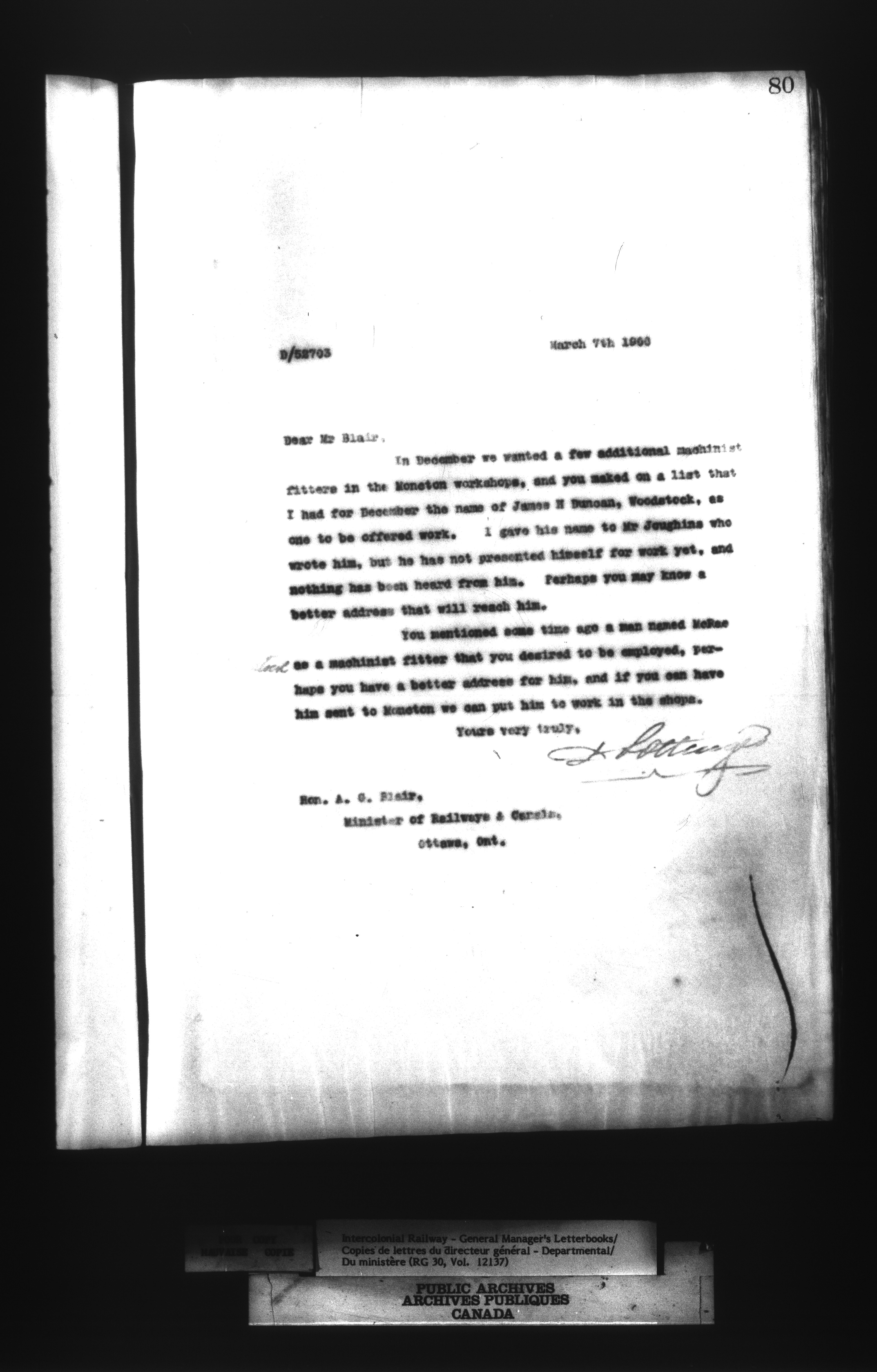 Canadian Government Railways : Office of the General Manager, Outward correspondence with Department of Railways and Canals, 1893-1913 - 12470