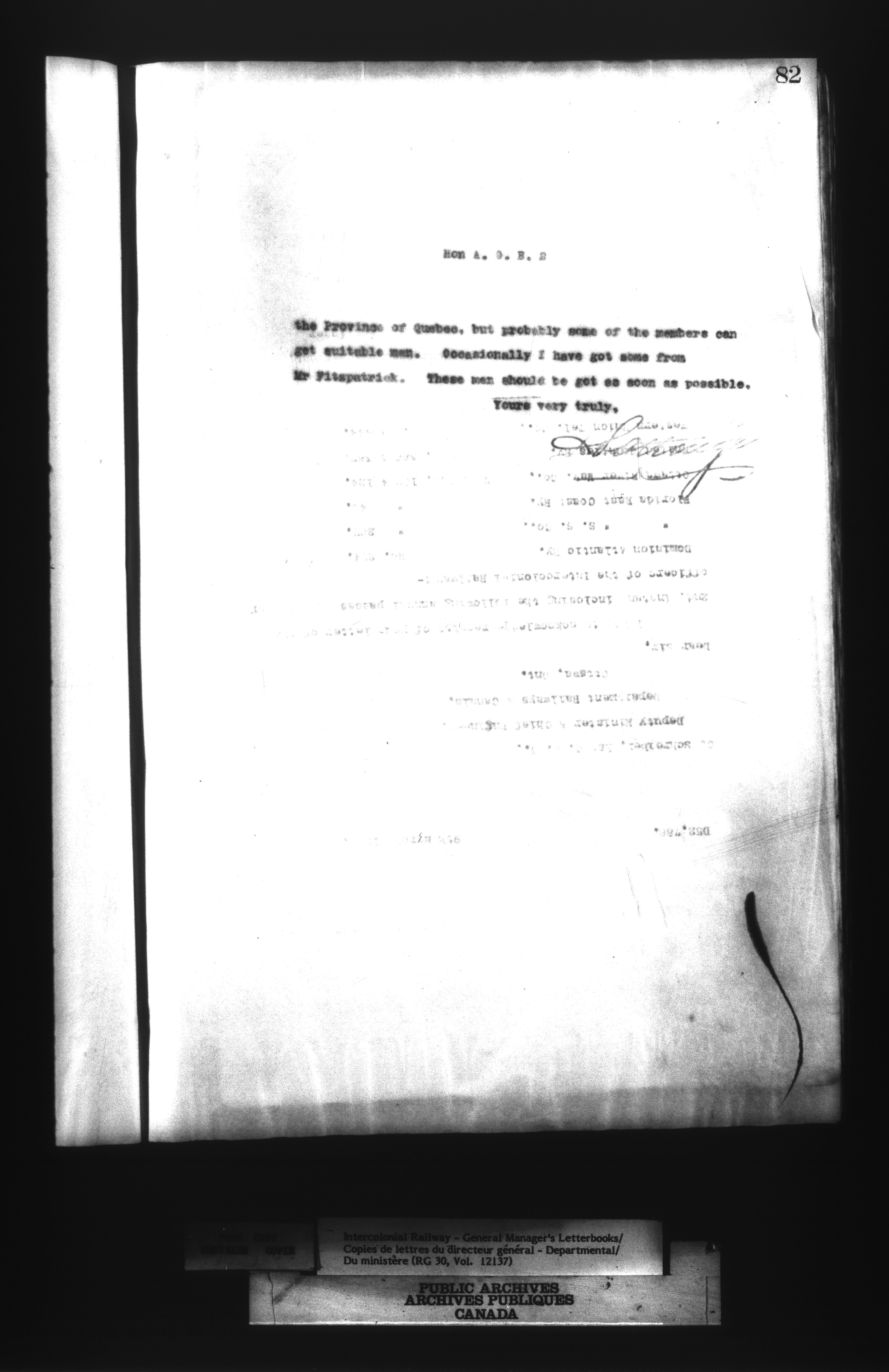 Canadian Government Railways : Office of the Chief Superintendent, Outward correspondence : C-12470