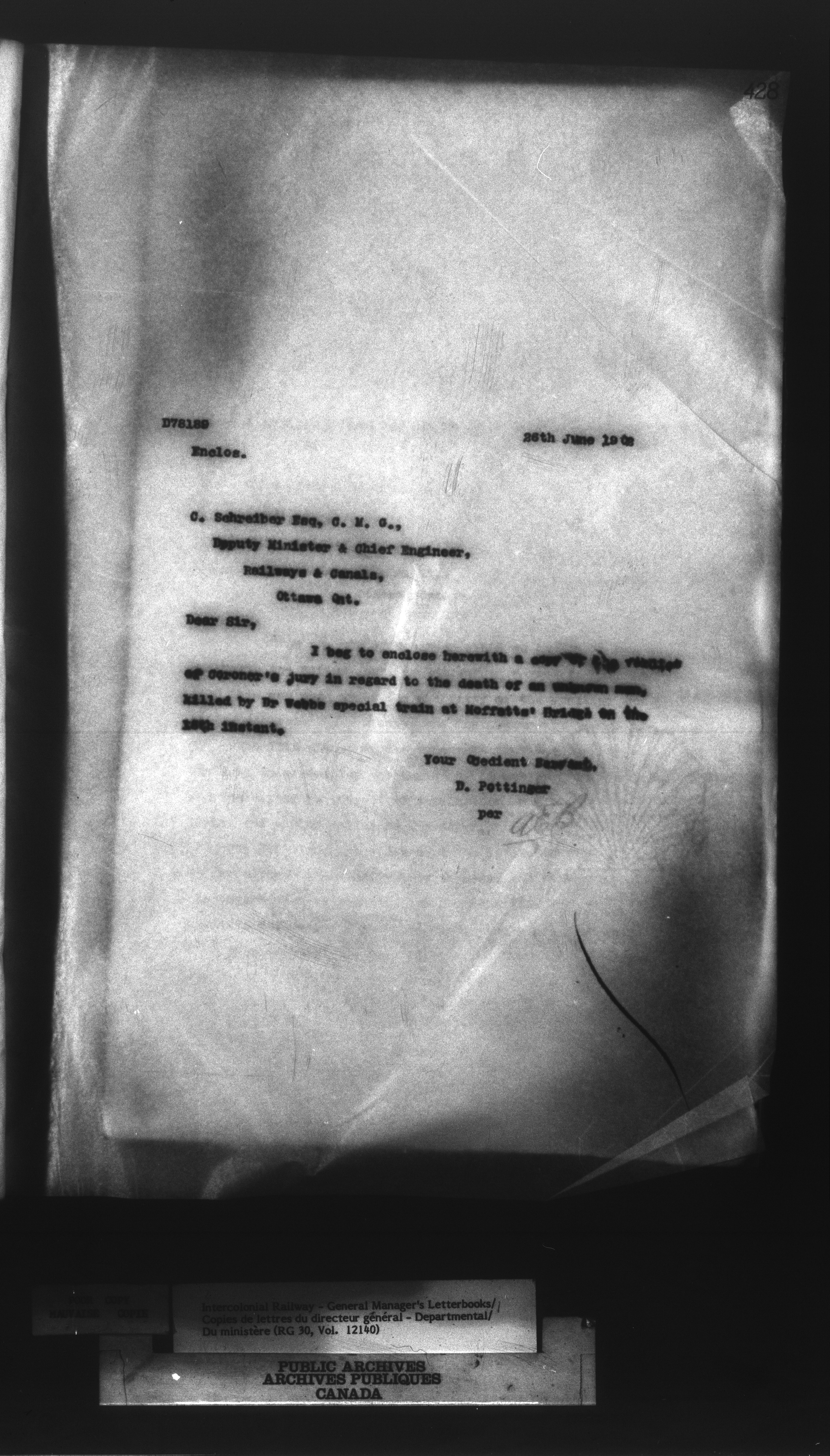 Canadian Government Railways : Office of the General Manager, Outward correspondence with Department of Railways and Canals, 1893-1913 - 12474