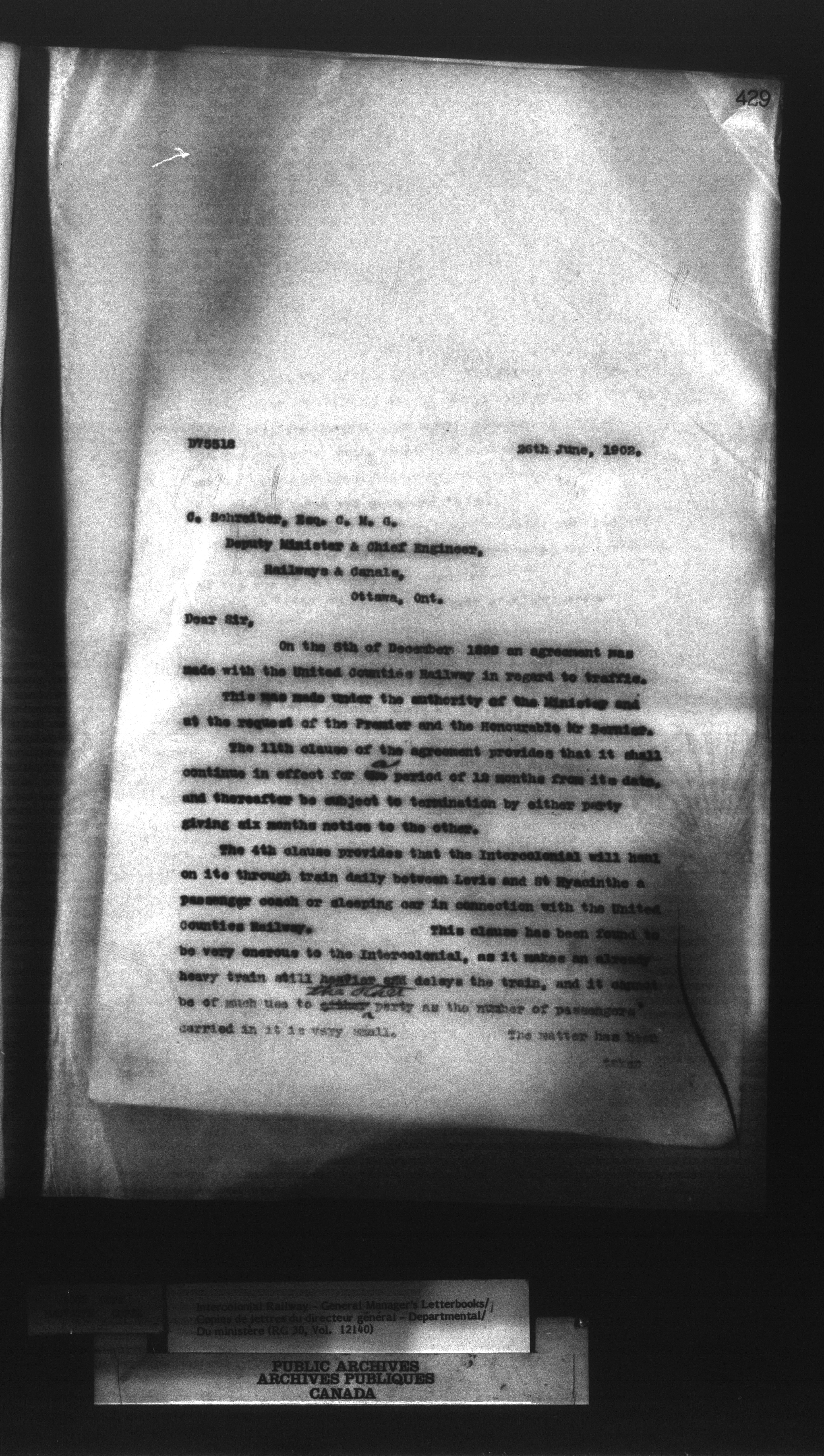 Canadian Government Railways : Office of the General Manager, Outward correspondence with Department of Railways and Canals, 1893-1913 - 12474
