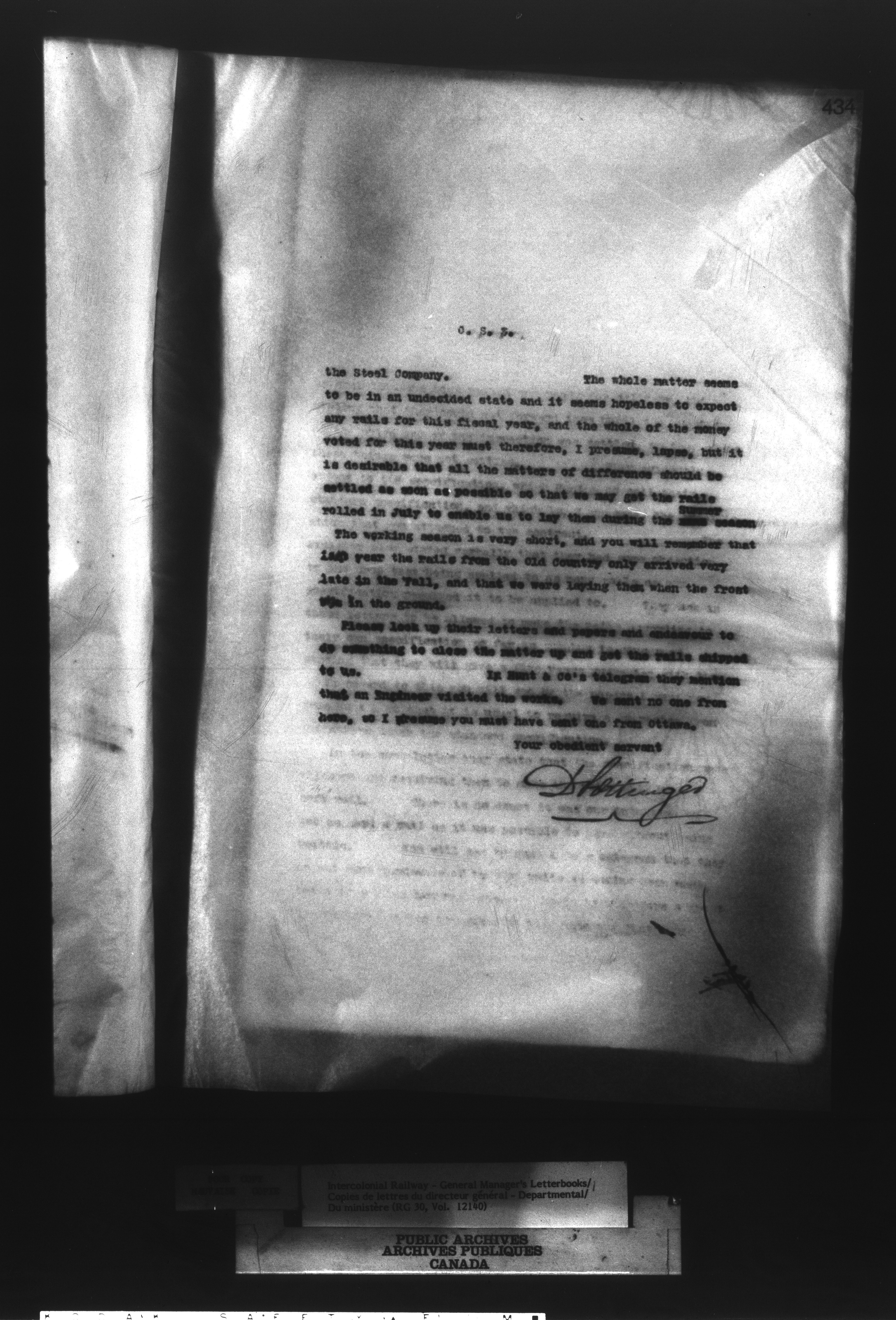 Canadian Government Railways : Office of the General Manager, Outward correspondence with Department of Railways and Canals, 1893-1913 - 12474