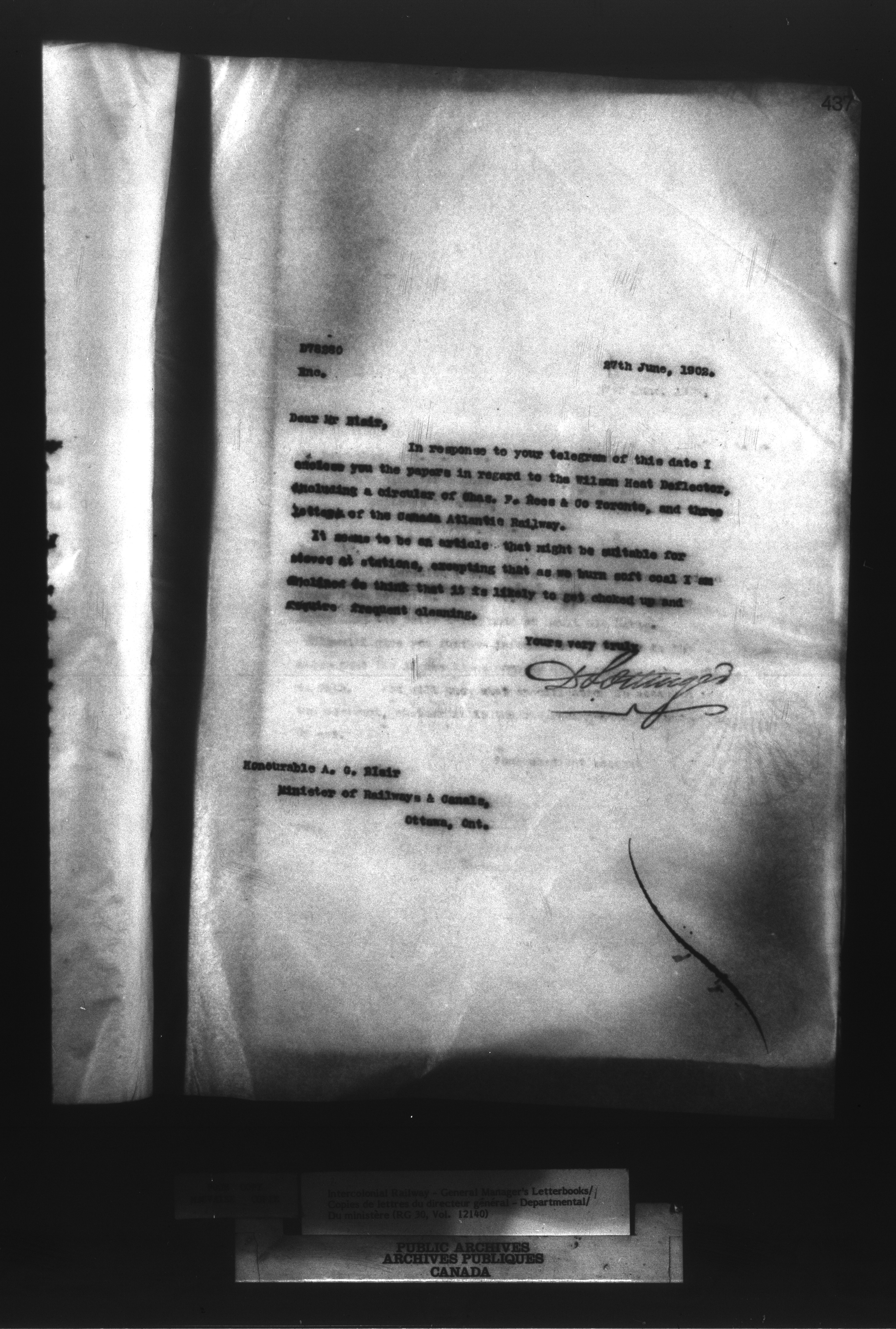 Canadian Government Railways : Office of the General Manager, Outward correspondence with Department of Railways and Canals, 1893-1913 - 12474