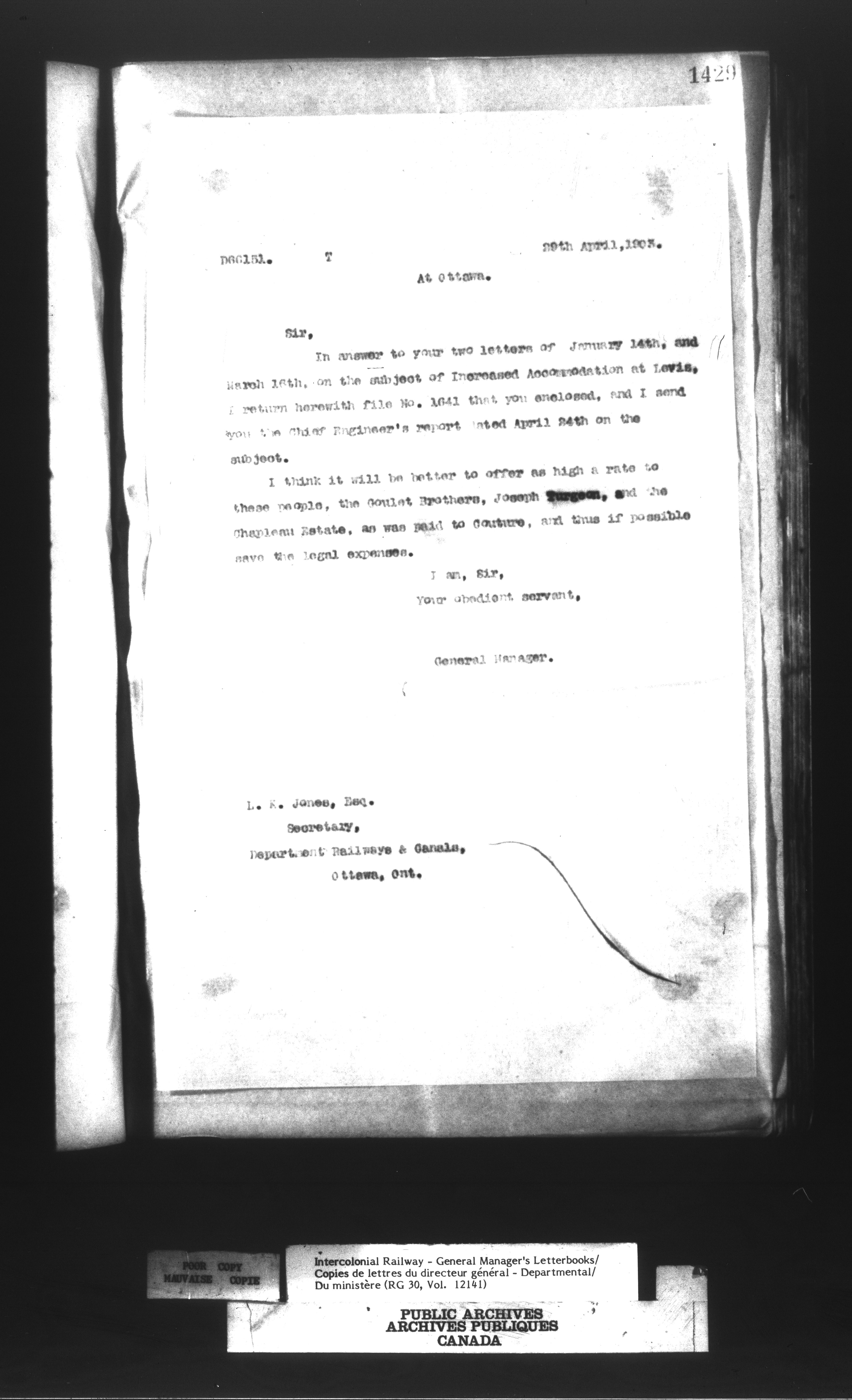 Canadian Government Railways : Office of the General Manager, Outward correspondence with Department of Railways and Canals, 1893-1913 - 12476