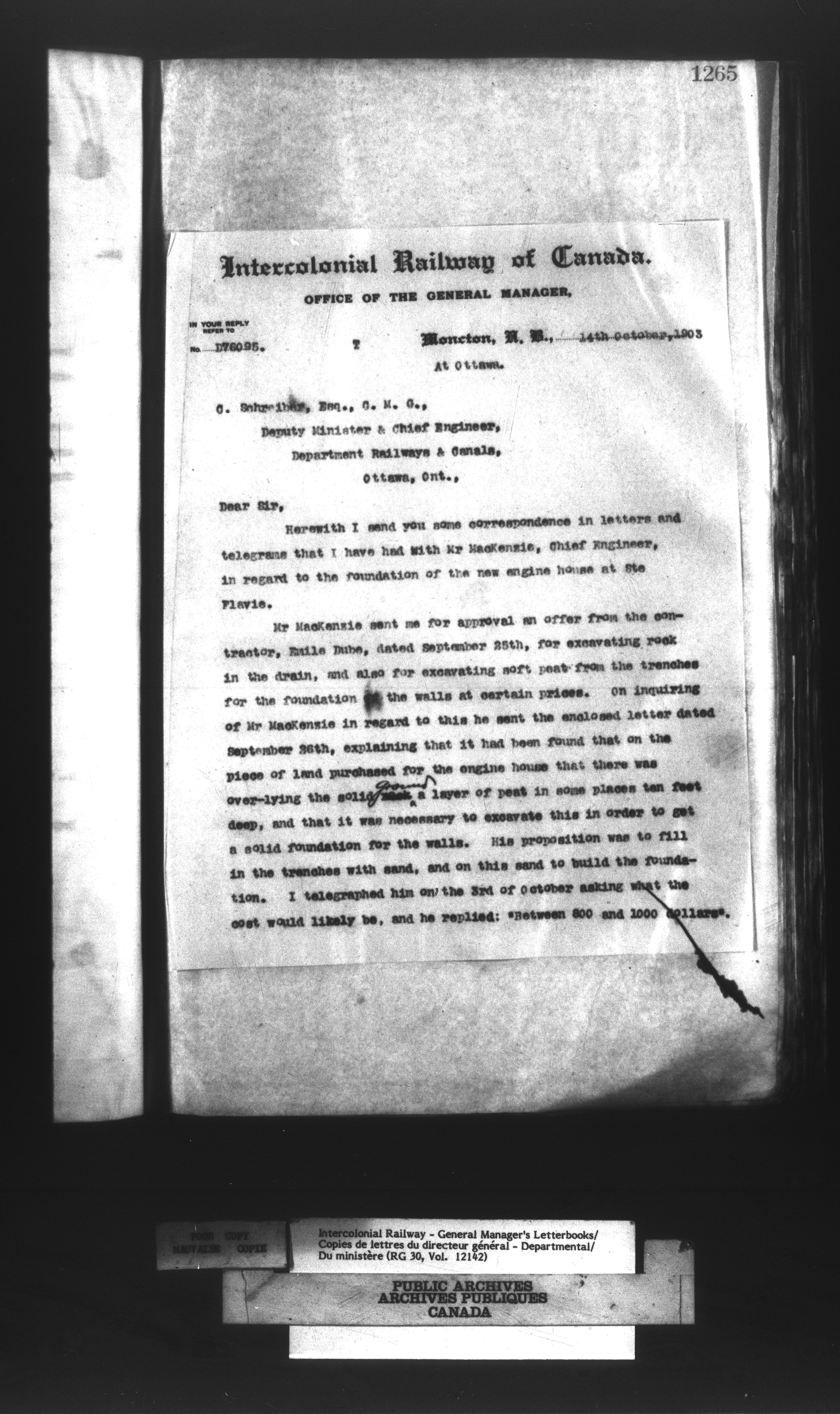 Canadian Government Railways : Office of the General Manager, Outward correspondence with Department of Railways and Canals, 1893-1913 - 12478