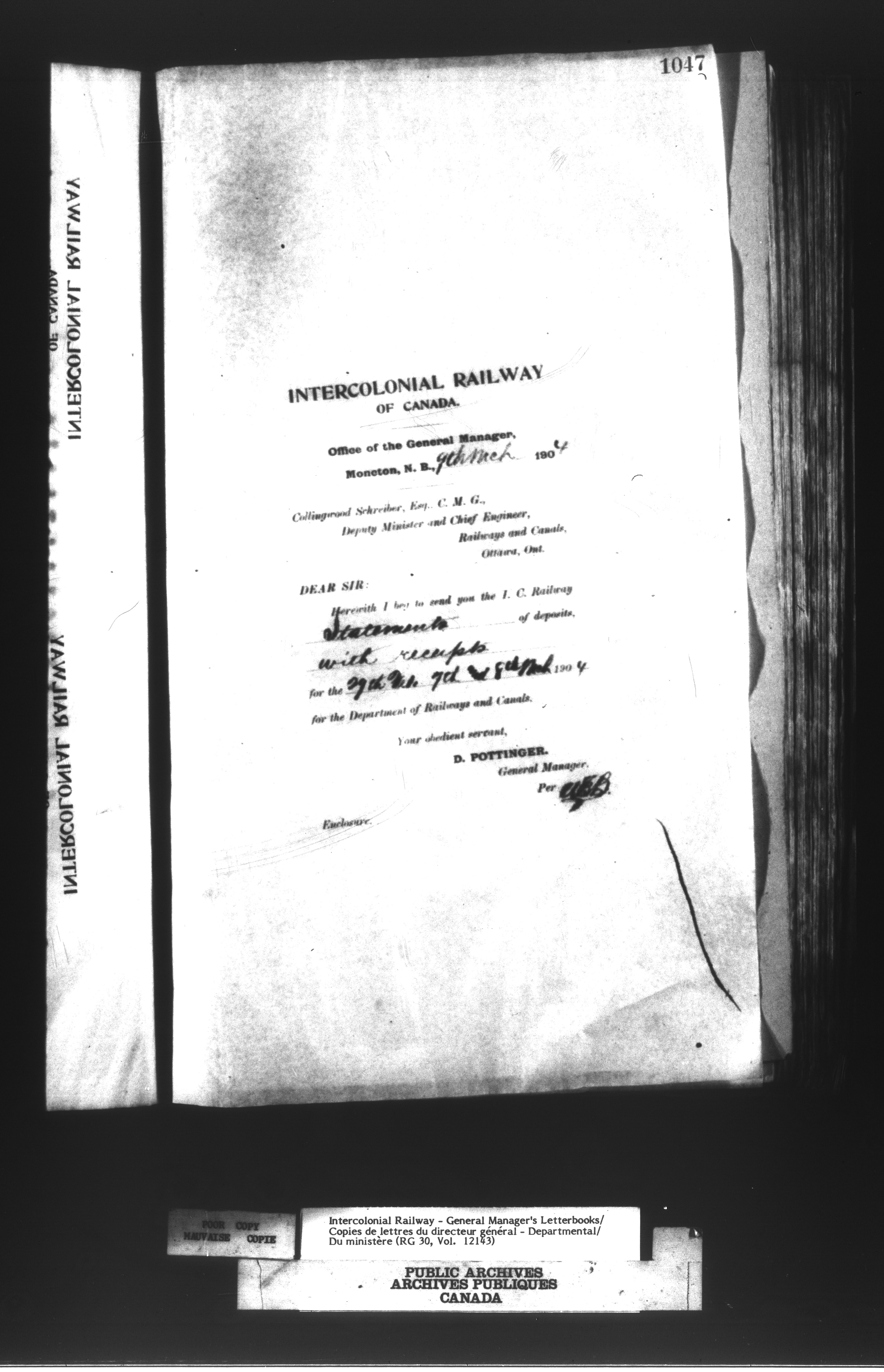 Canadian Government Railways : Office of the General Manager, Outward correspondence with Department of Railways and Canals, 1893-1913 - 12479